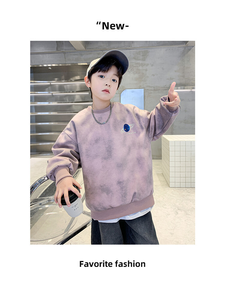 국경 소년들의 반사 땀 유행 가을 의류 한국 스타일 어린이 느슨한 스포츠 라운드 넥 긴 소매 탑 가을 어린이 의류