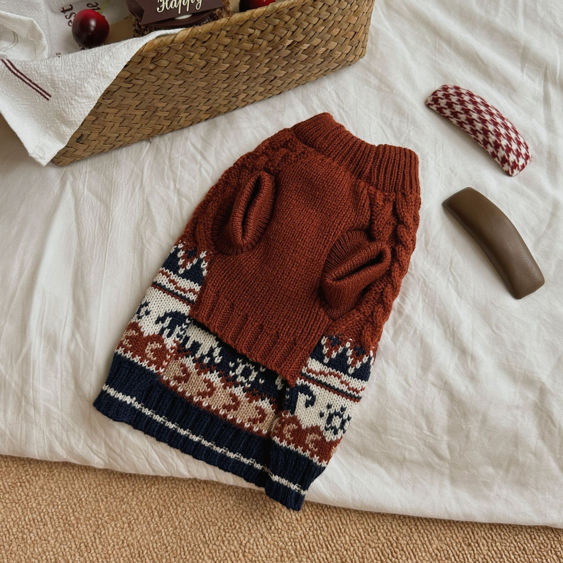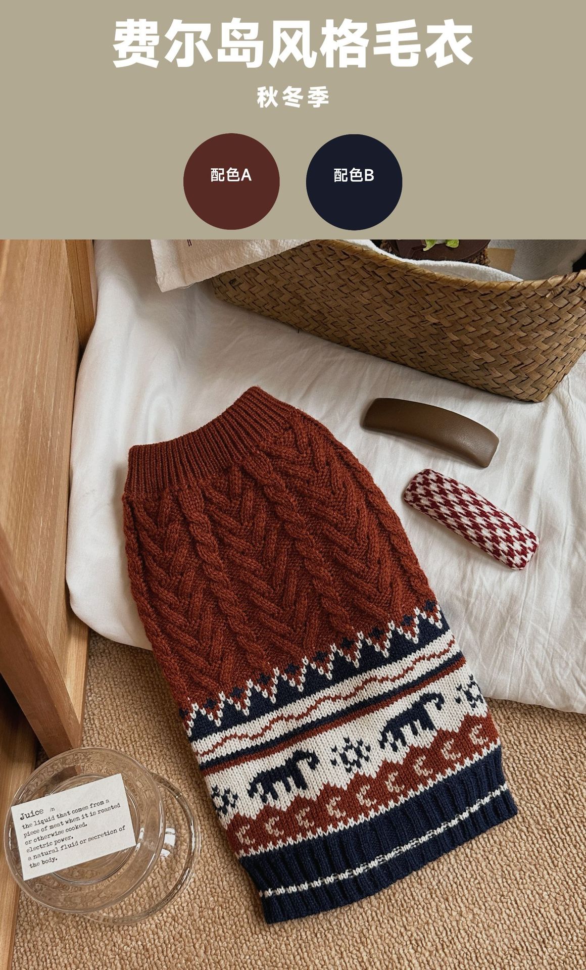 페어 아일 애완동물 스웨터 가을 겨울 따뜻한 고양이 강아지 옷 테디 용품 작은 강아지 강아지 보온복