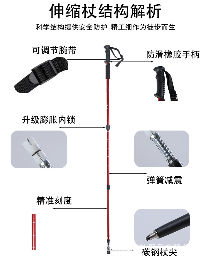 국경 간 클라이밍 스틱 초경량 텔레스코픽 폴딩 전문 야외 하이킹 스틱 목발 등산 장비 알루미늄 합금 워킹 스틱