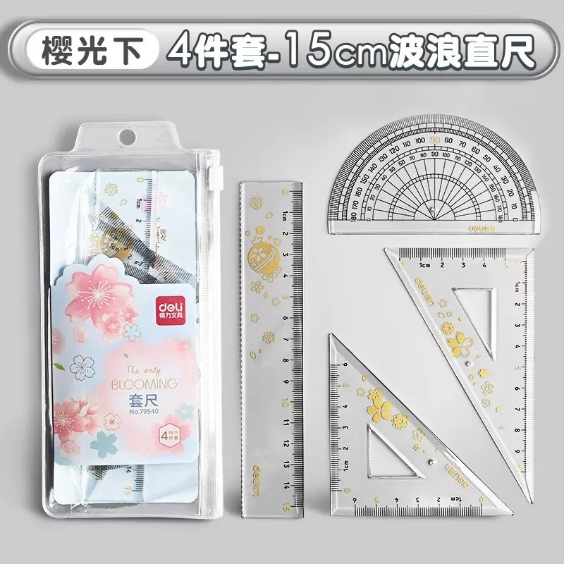 델리 높은 침투 쉬운 픽업 통치자 세트 4 조각 세트 학생들이 테스트 드로잉 투명 통치자를 사용하는 대형 디지털 통치자스토어 가기