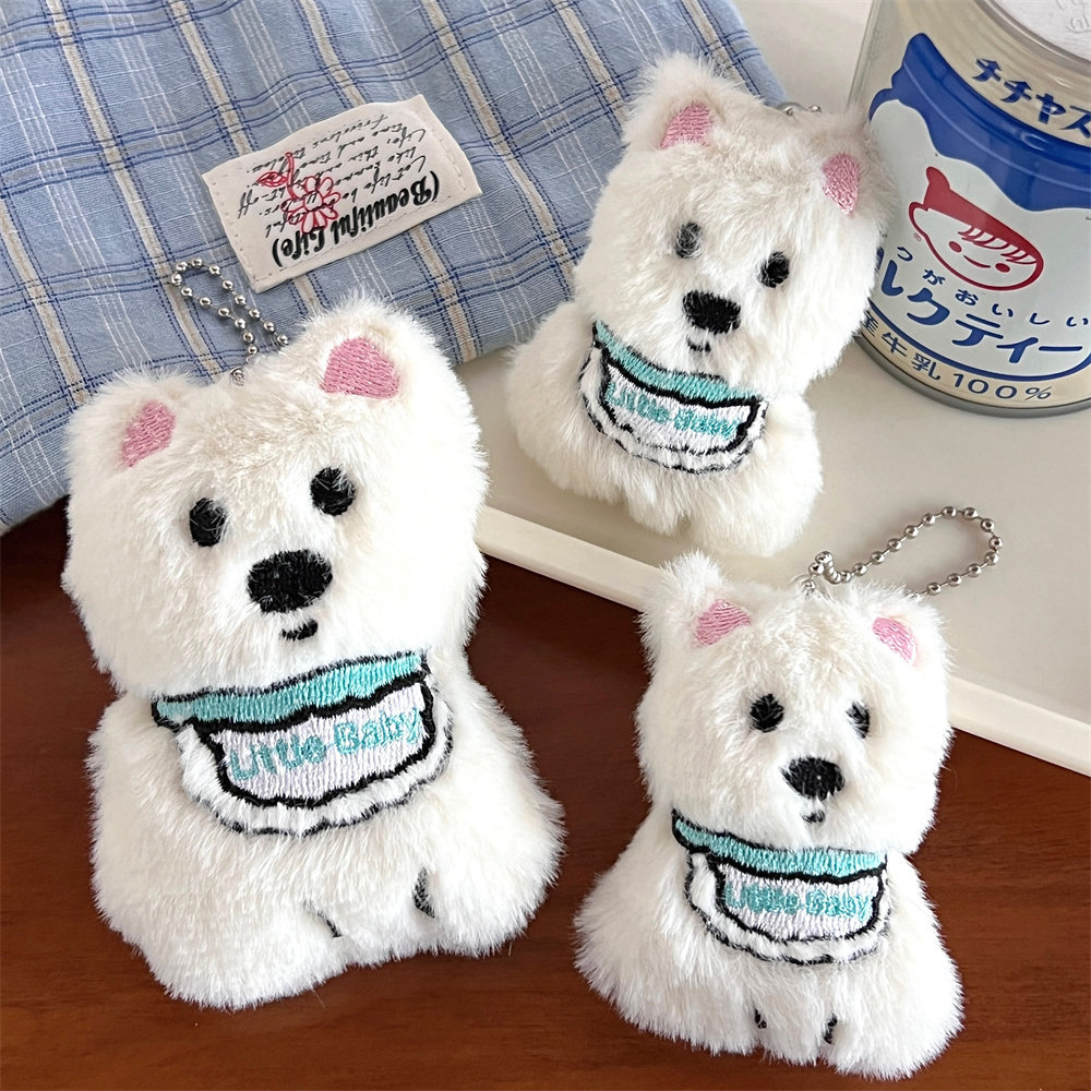 귀여운 턱받이 강아지 펜던트 창조적 인 봉제 인형 펜던트 보석 소녀 가방 키 체인 펜던트 쥬얼리