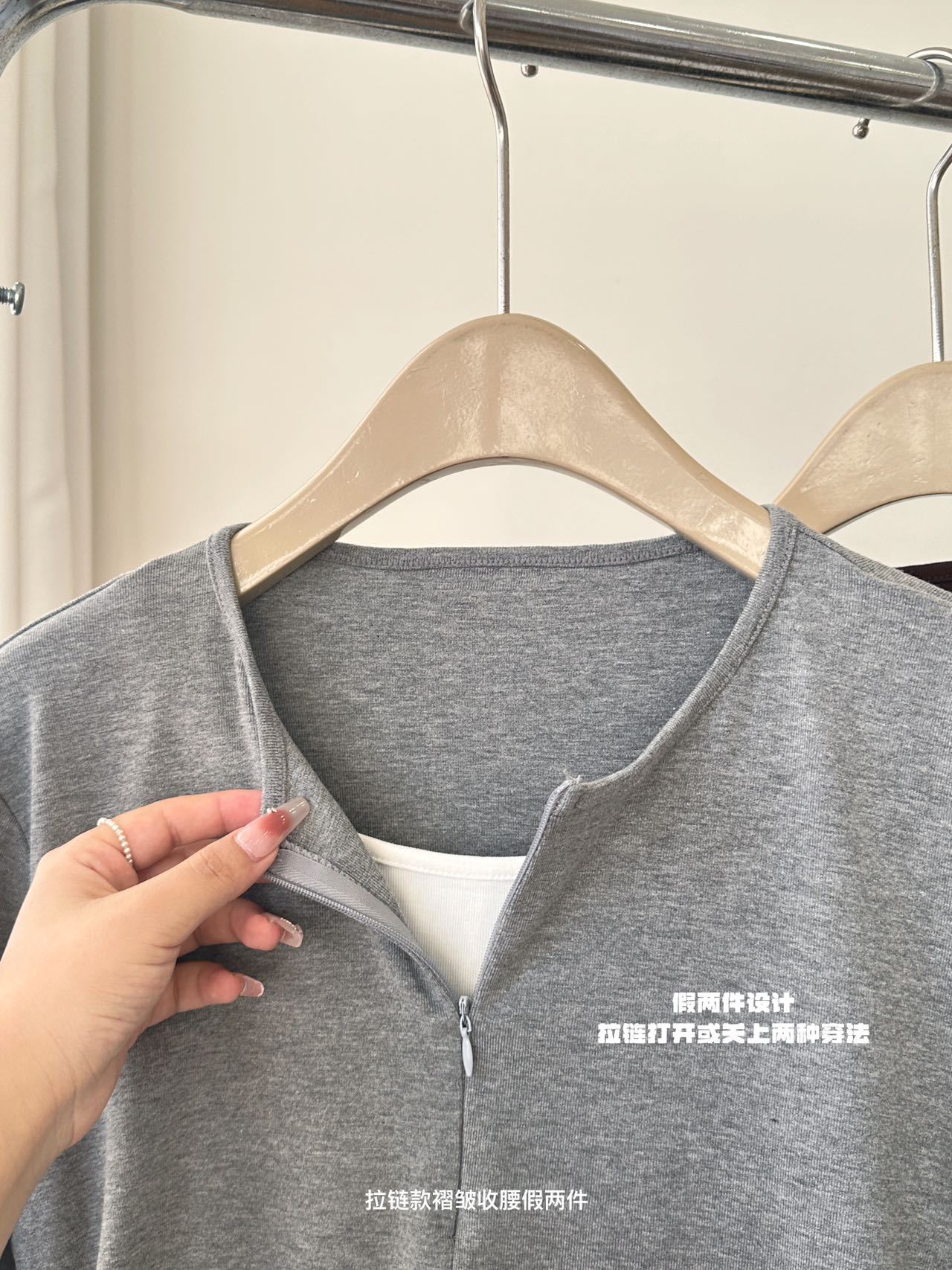 가을과 겨울 가짜 투피스 지퍼베이스 셔츠 긴 소매 외피-한국식 슬림-적합 허리 슬리밍 여성을위한 올매치 라운드 넥 탑