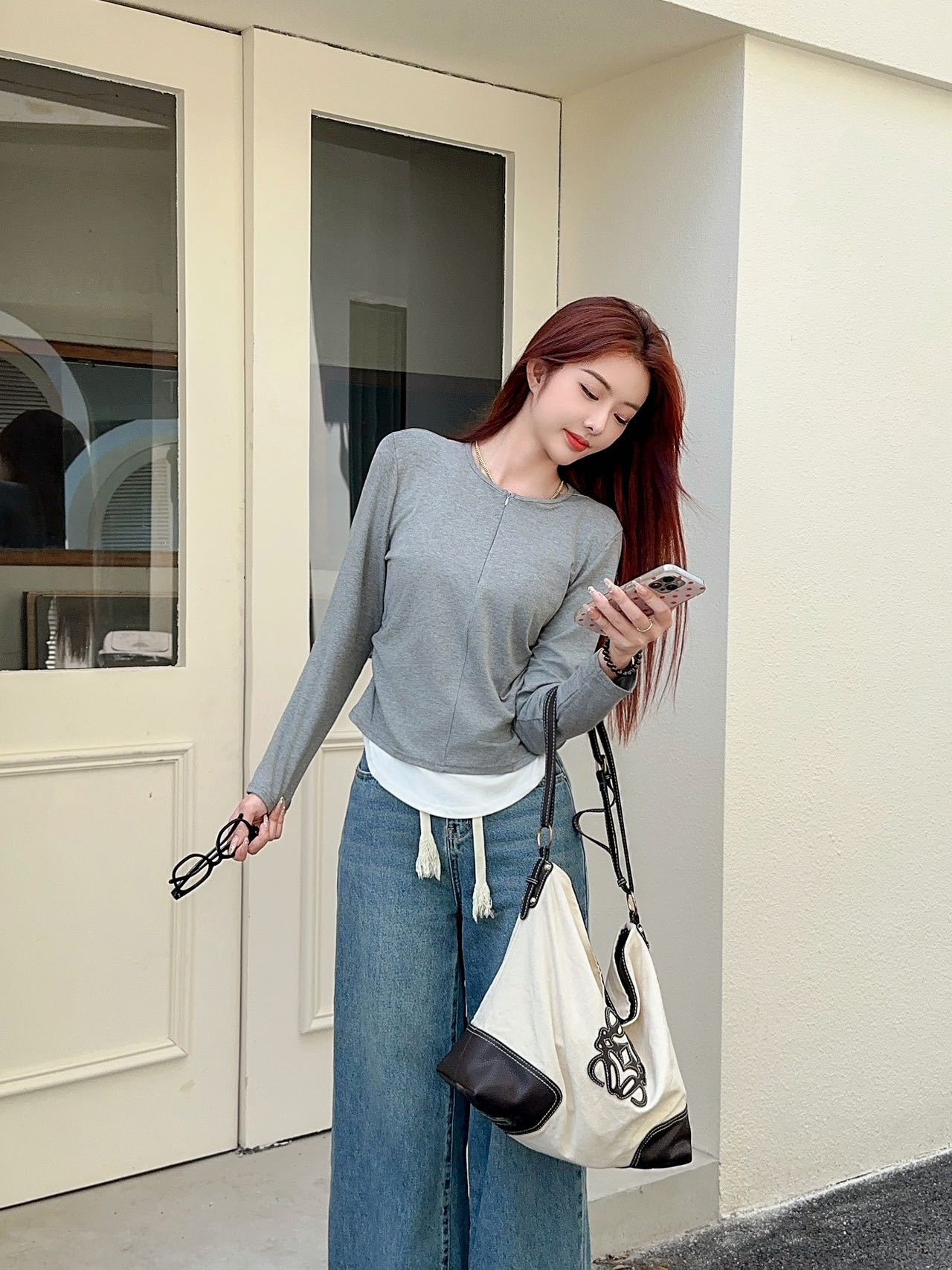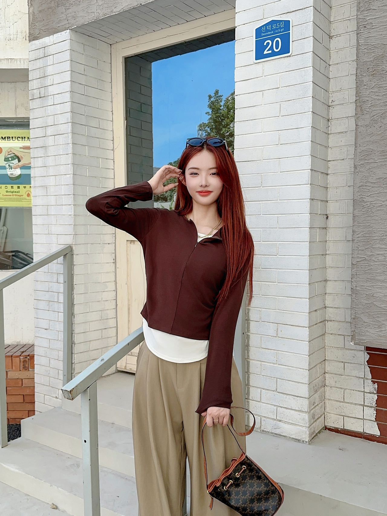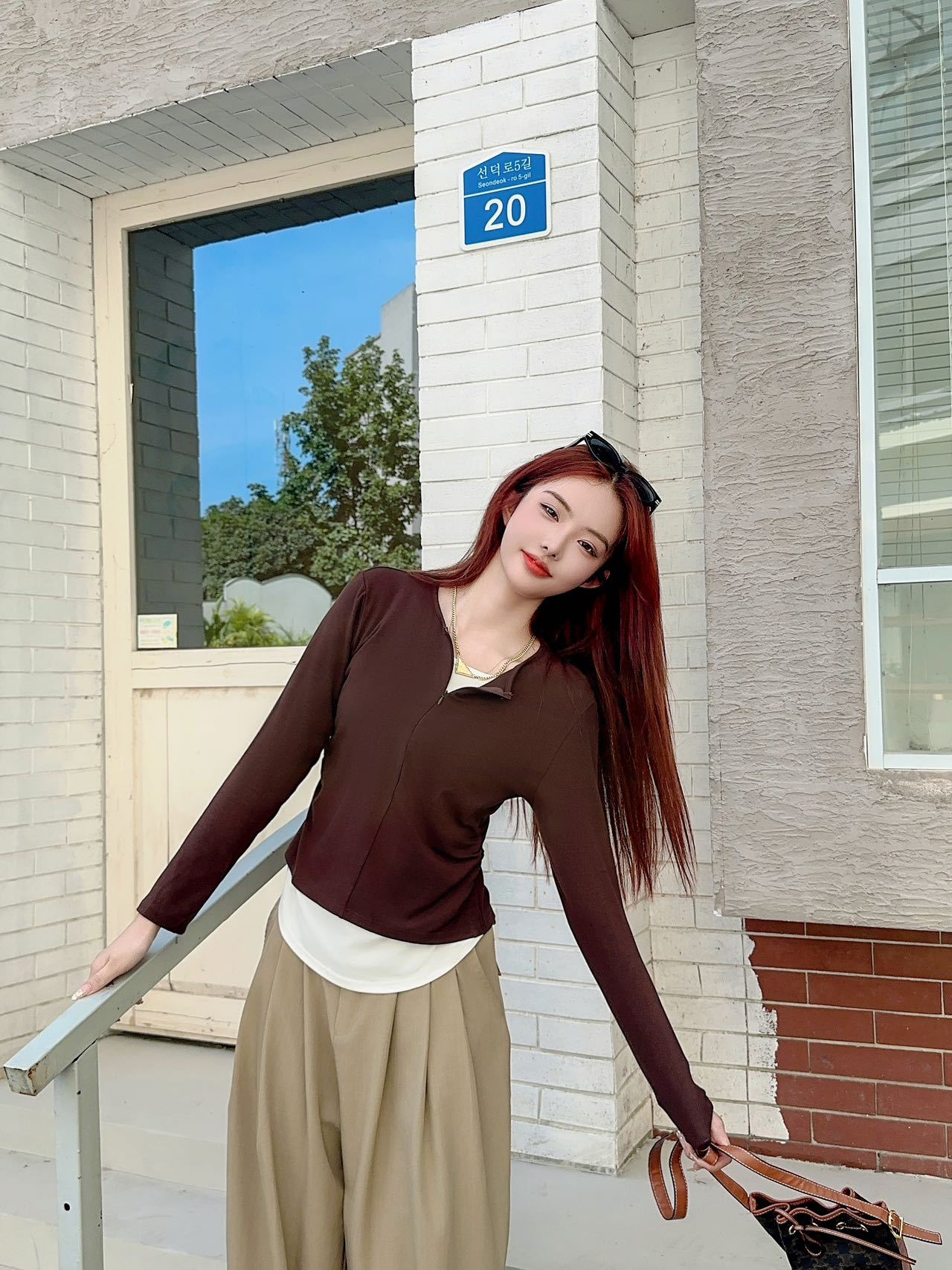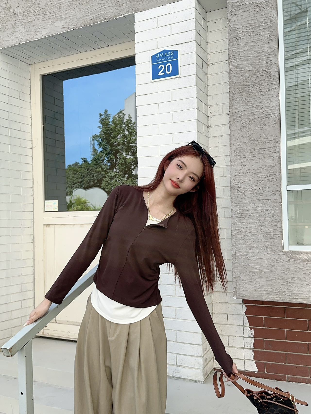 가을과 겨울 가짜 투피스 지퍼베이스 셔츠 긴 소매 외피-한국식 슬림-적합 허리 슬리밍 여성을위한 올매치 라운드 넥 탑스토어 가기