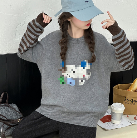 • 오렌지 소다 & 타월 자수 스웨터 그레이