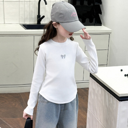 • Meng'erfei 아동복 & 핫 다이아몬드 리본 긴 소매 흰색