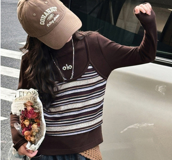 • 무이 감자&2586 페이크 투피스 따뜻한 밑단 셔츠