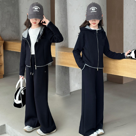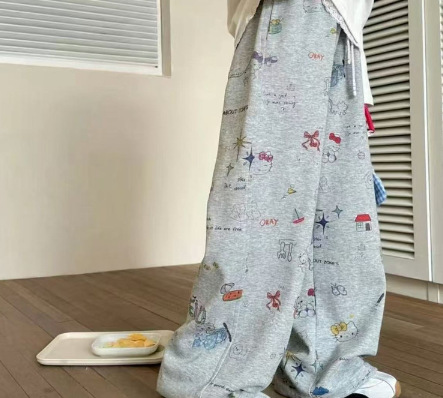 소녀 꽃 바지 세트 가을 새 2024 한국 스타일 서양식 대형 어린이 느슨한 스트레이트 바지 긴 바지스토어 가기