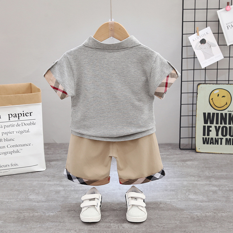 소년 여름 세트 반팔 옷깃 폴로 셔츠 대외 무역 여름 새로운 어린이 캐주얼 바지 투피스 도매 조수스토어 가기