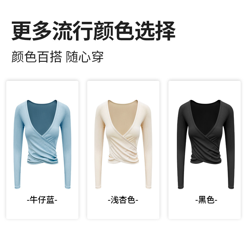 요가 의류 여성의 새로운 스포츠 크로스 주름 V넥 긴 소매 티셔츠 러닝 피트니스 필라테스 요가 블라우스 탑