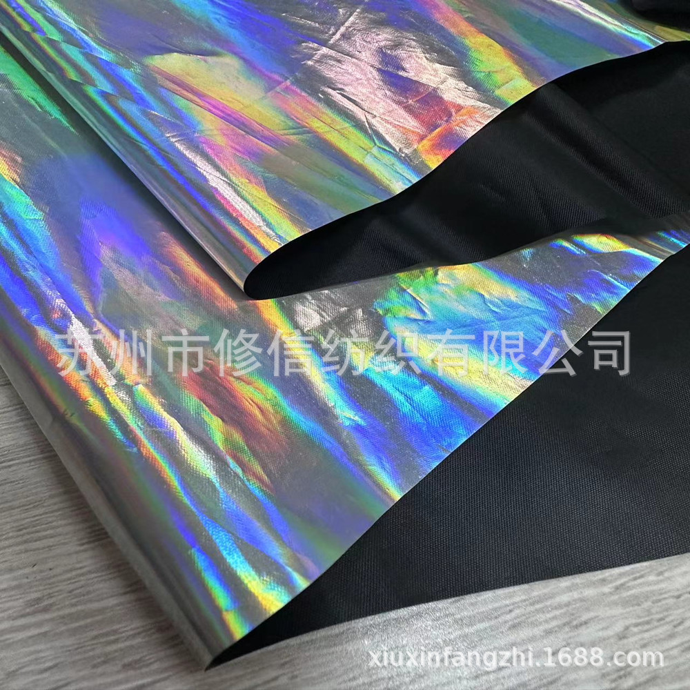 | 产品 | 全遮光190T黑丝涤塔夫烫金镭射银 幻彩镭射反光汽车前挡遮阳面料 |