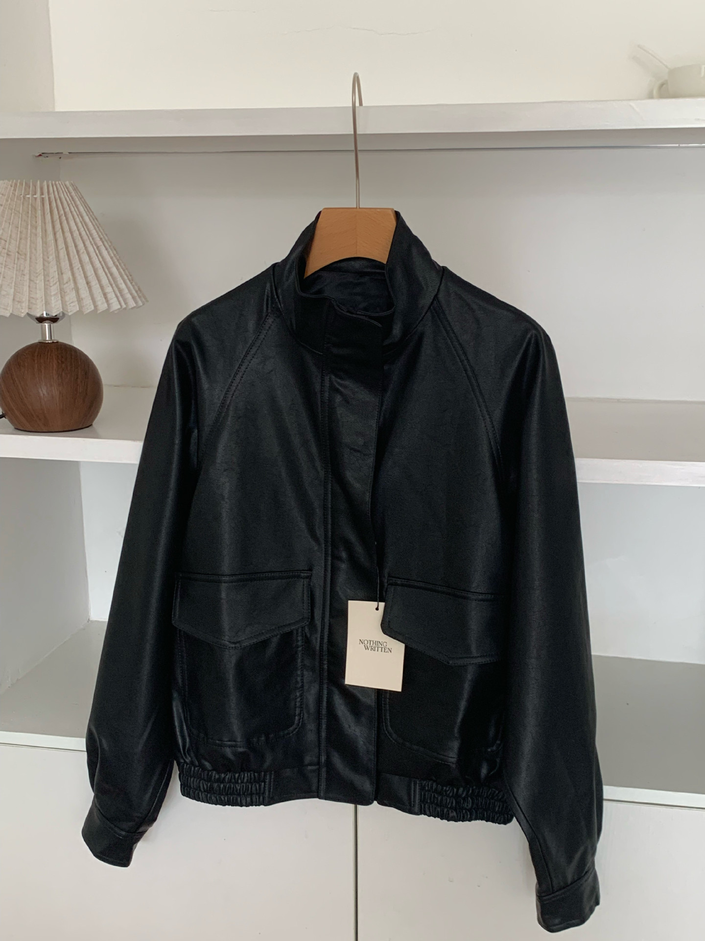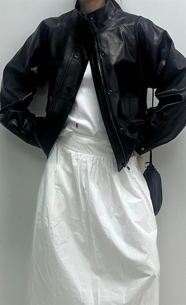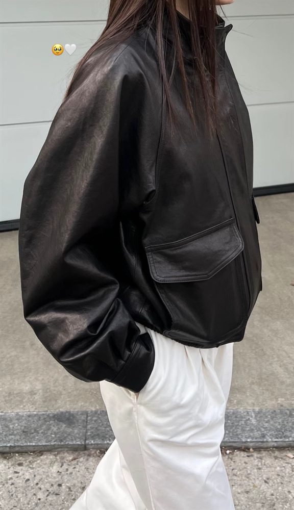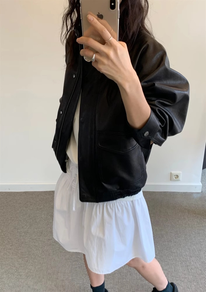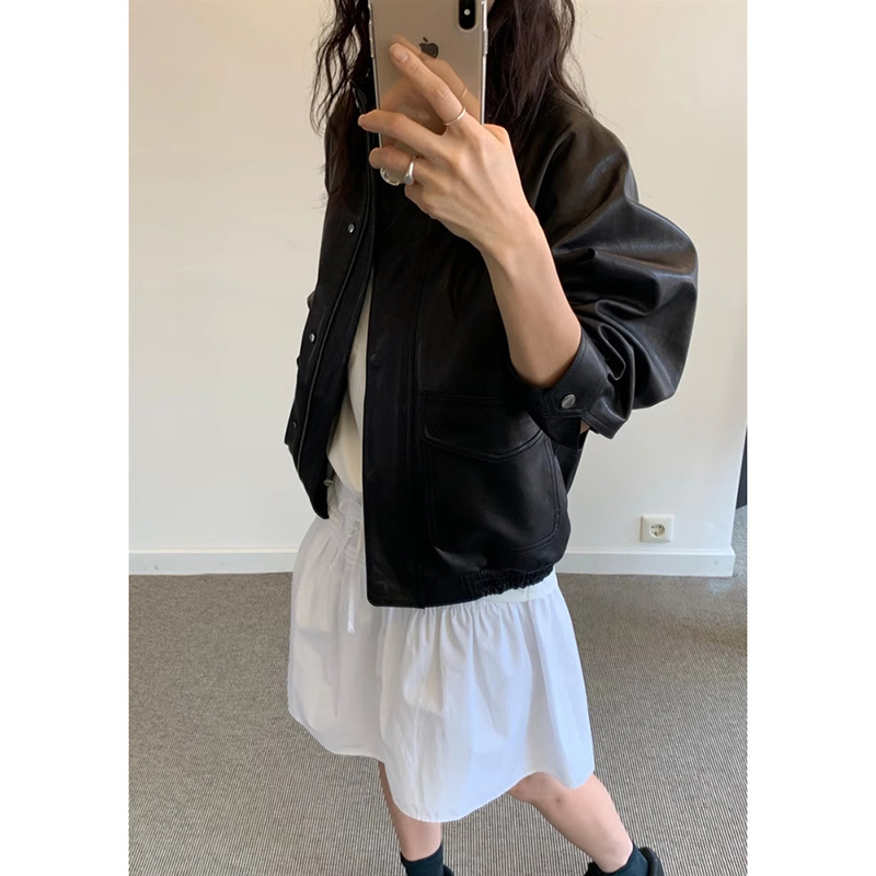 재고 있음 스탠드 칼라 블랙 가죽 재킷 여성용 2025 봄 한국 스타일 인스 레트로 캐주얼 심플 바이커 가죽 재킷스토어 가기