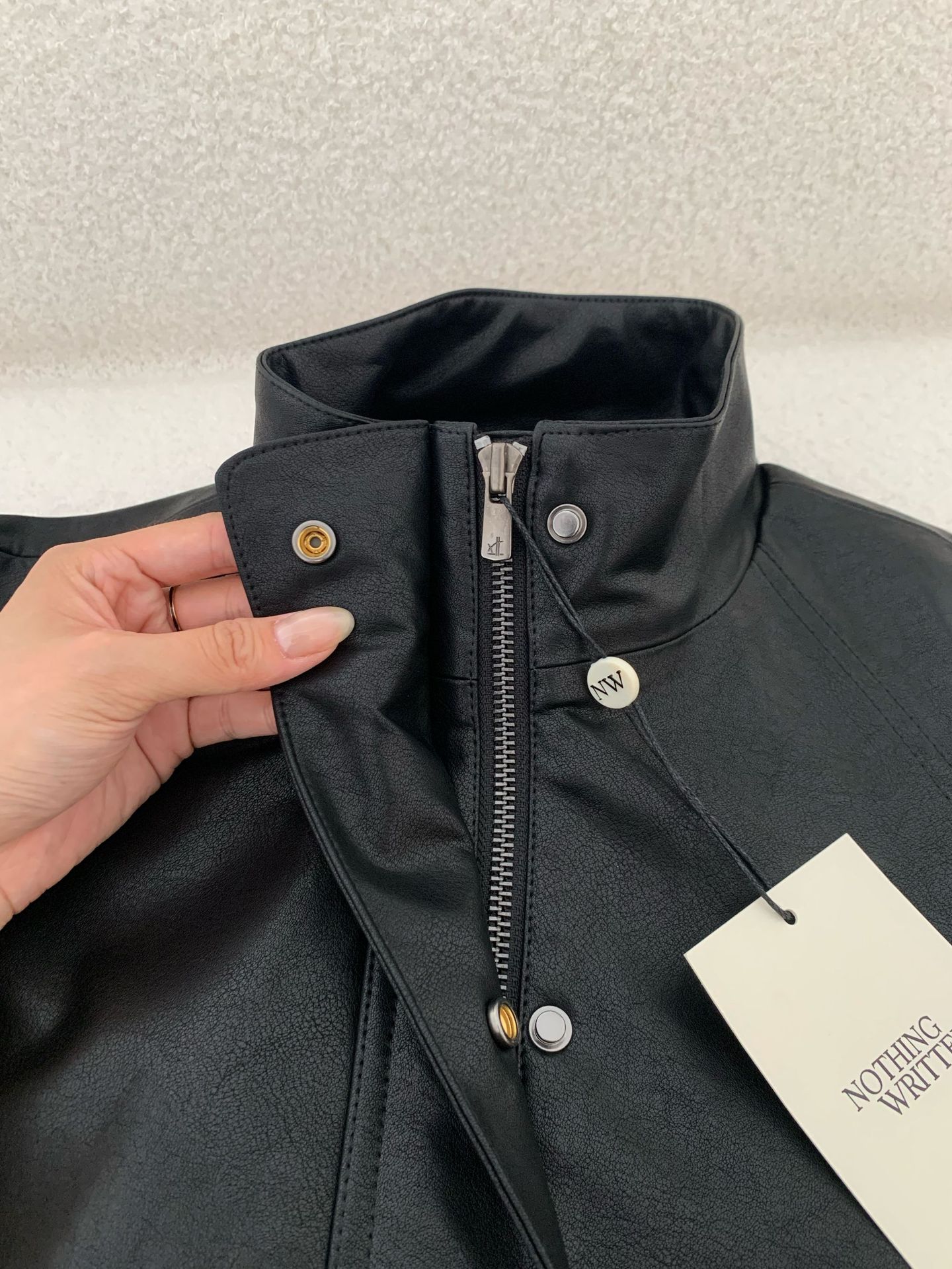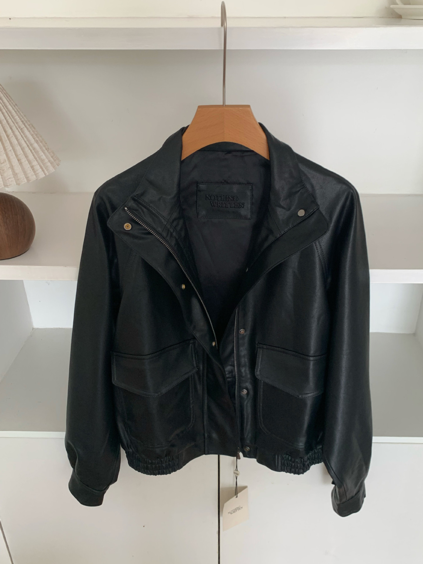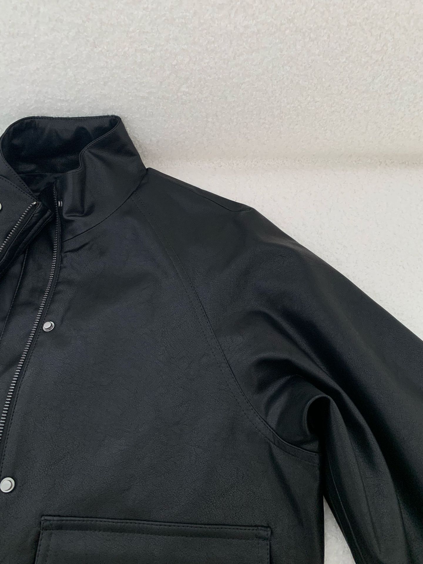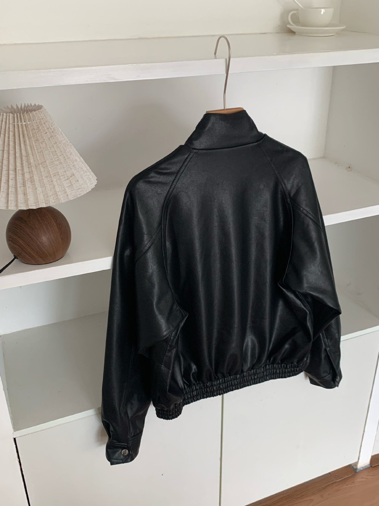 재고 있음 스탠드 칼라 블랙 가죽 재킷 여성용 2025 봄 한국 스타일 인스 레트로 캐주얼 심플 바이커 가죽 재킷스토어 가기