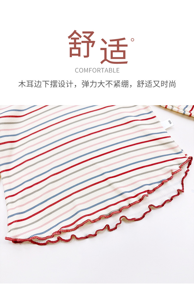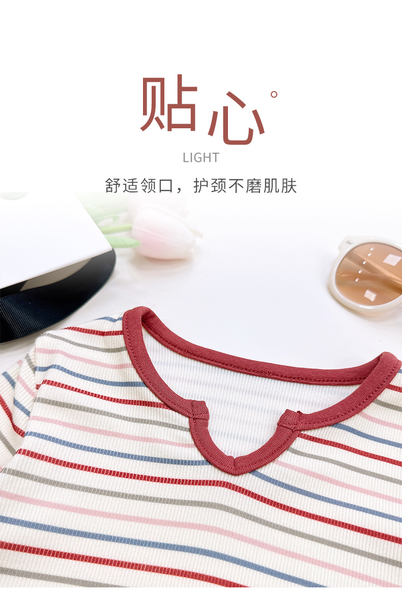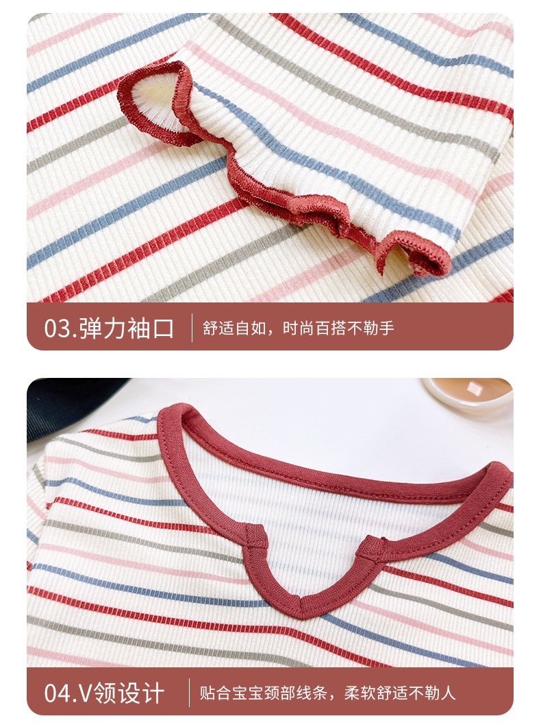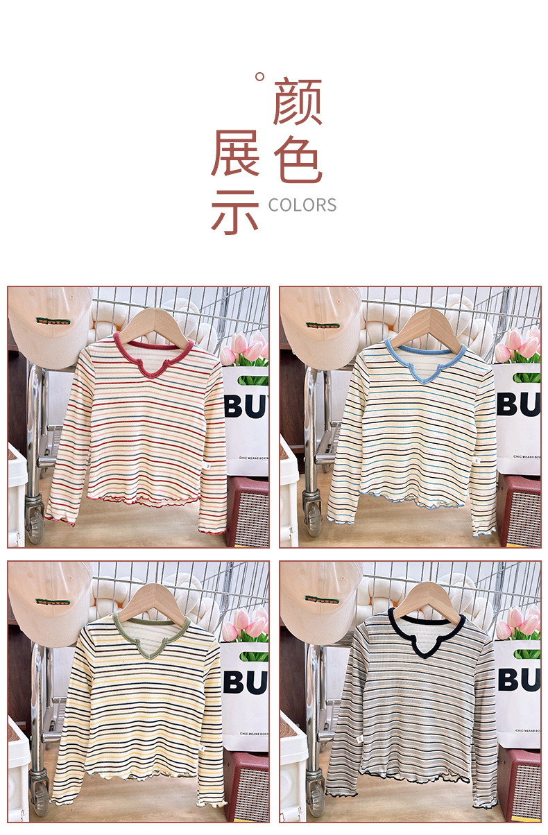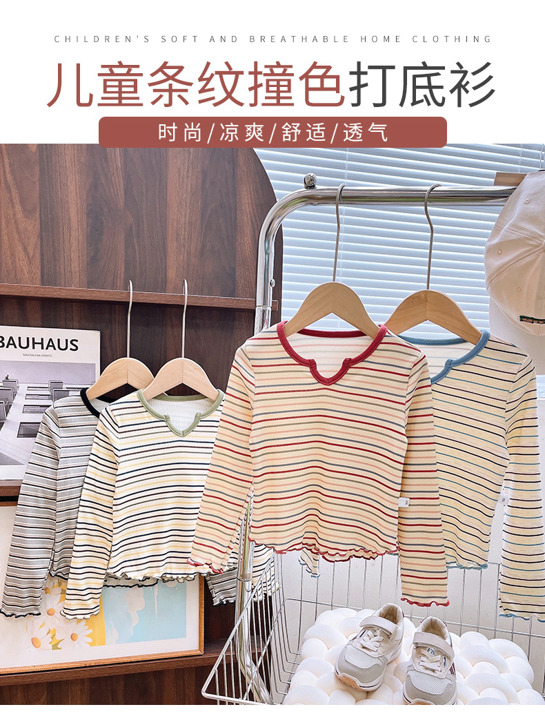 아동용 베이스 레이어 2024 가을 신상 여아 스트라이프 배색 티셔츠 유아용 풀오버 긴팔 상의 한국 스타일스토어 가기