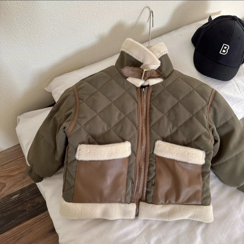 儿童冬季新款棉服中小童男女宝宝加绒加厚棉袄保暖夹克机车服外套