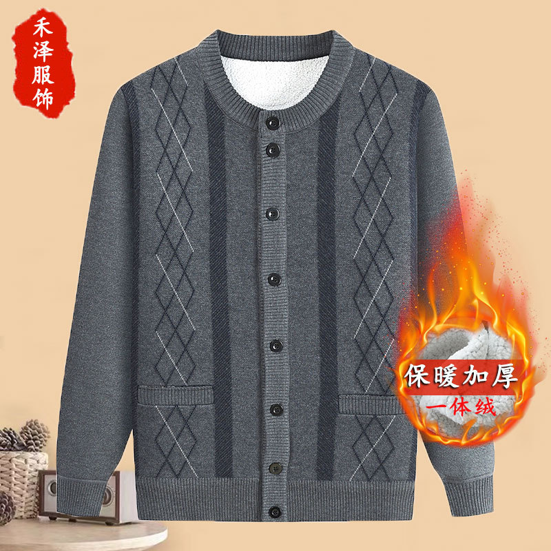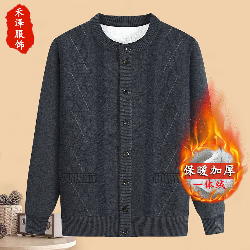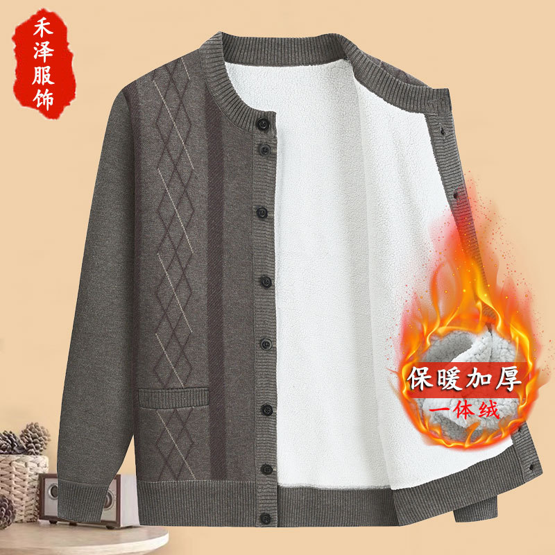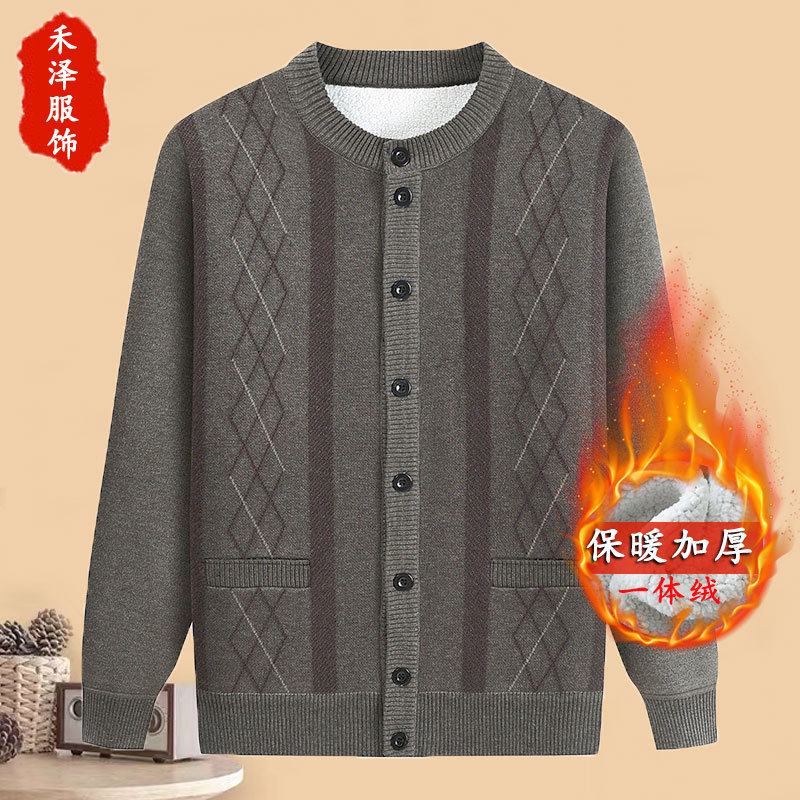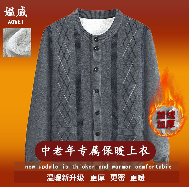 아빠의 가을과 겨울 양털 스웨터 중년 니트 카디건 재킷 할아버지 기모 따뜻한 겨울 긴팔 두껍게스토어 가기