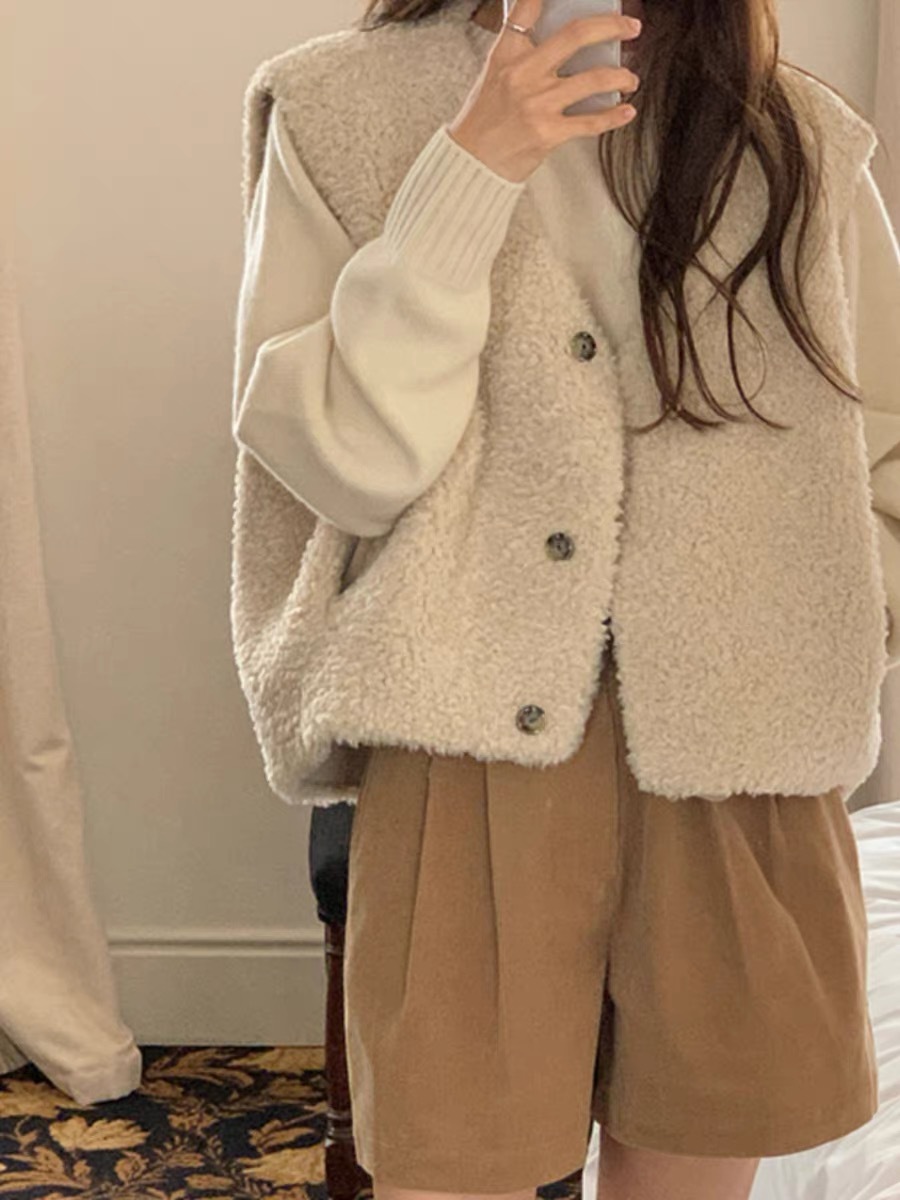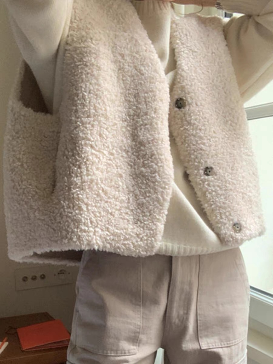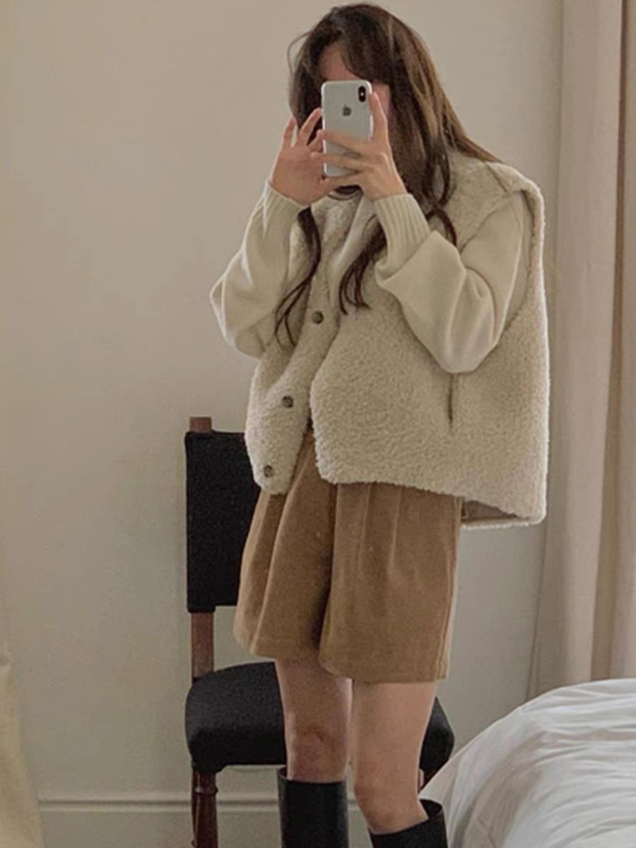 한국 스타일 신입 부드러운 레트로 V-넥 연령 감소 민소매 조끼 양모 양모 여성용 조끼스토어 가기