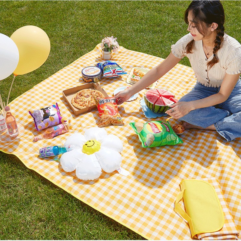 • 600D 옥스포드 천-노란색 체크무늬 피크닉 매트