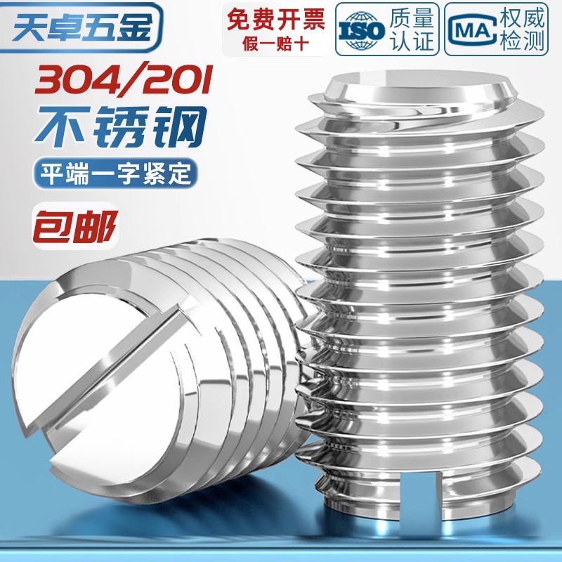 201 스테인레스 스틸 편평한 끝 조임 나사 슬롯 머리없는 기계 쌀 플랫 헤드 M3M4M5M6-M12