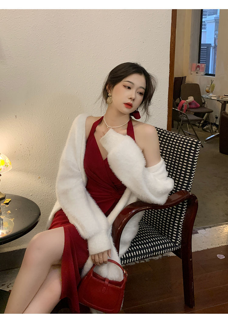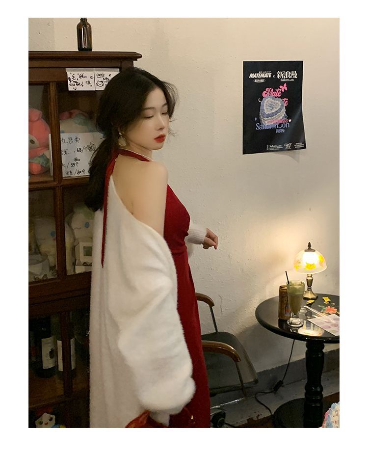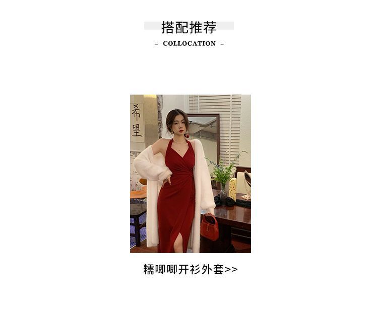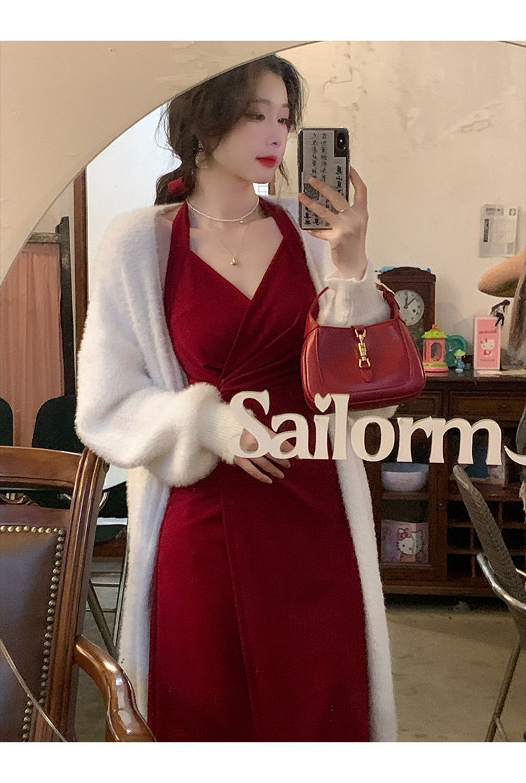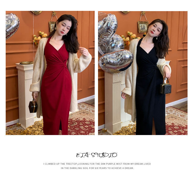 새로운 중국 스타일 레트로 넥 원피스 여성의 가을과 겨울 니트 스웨터 투피스 세트스토어 가기