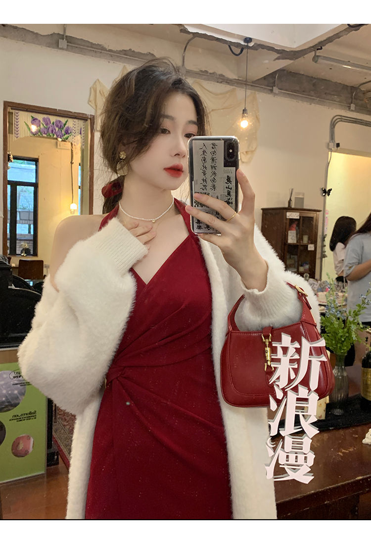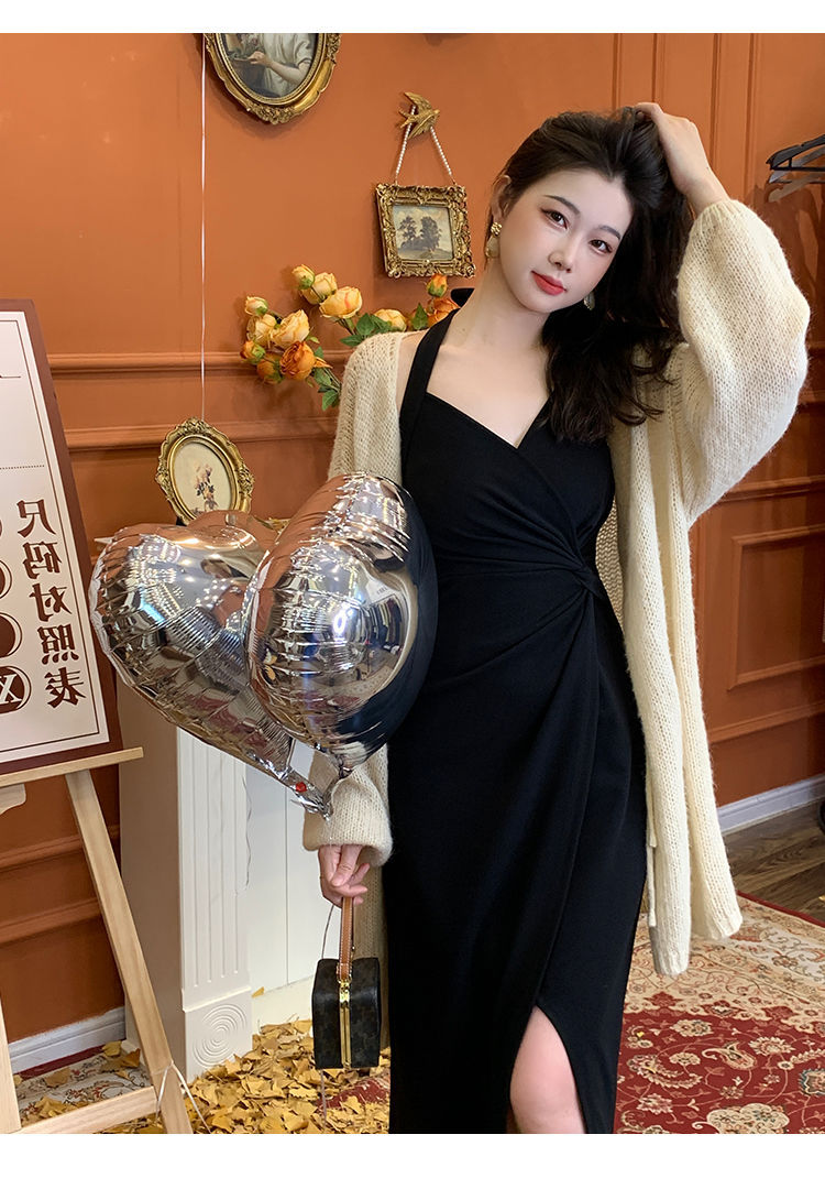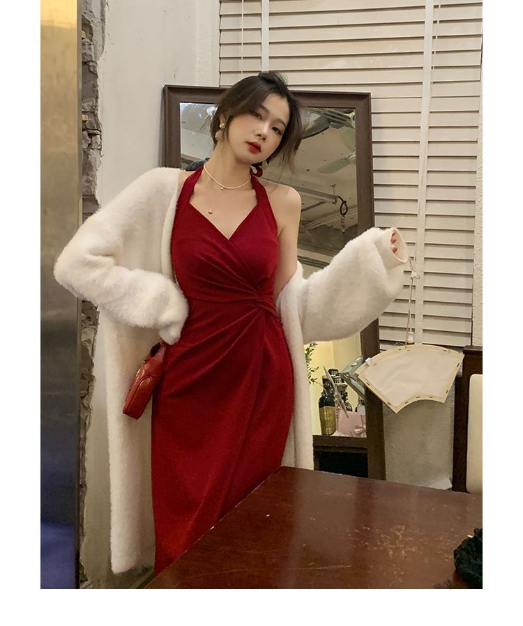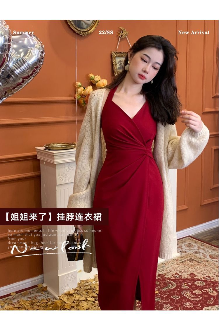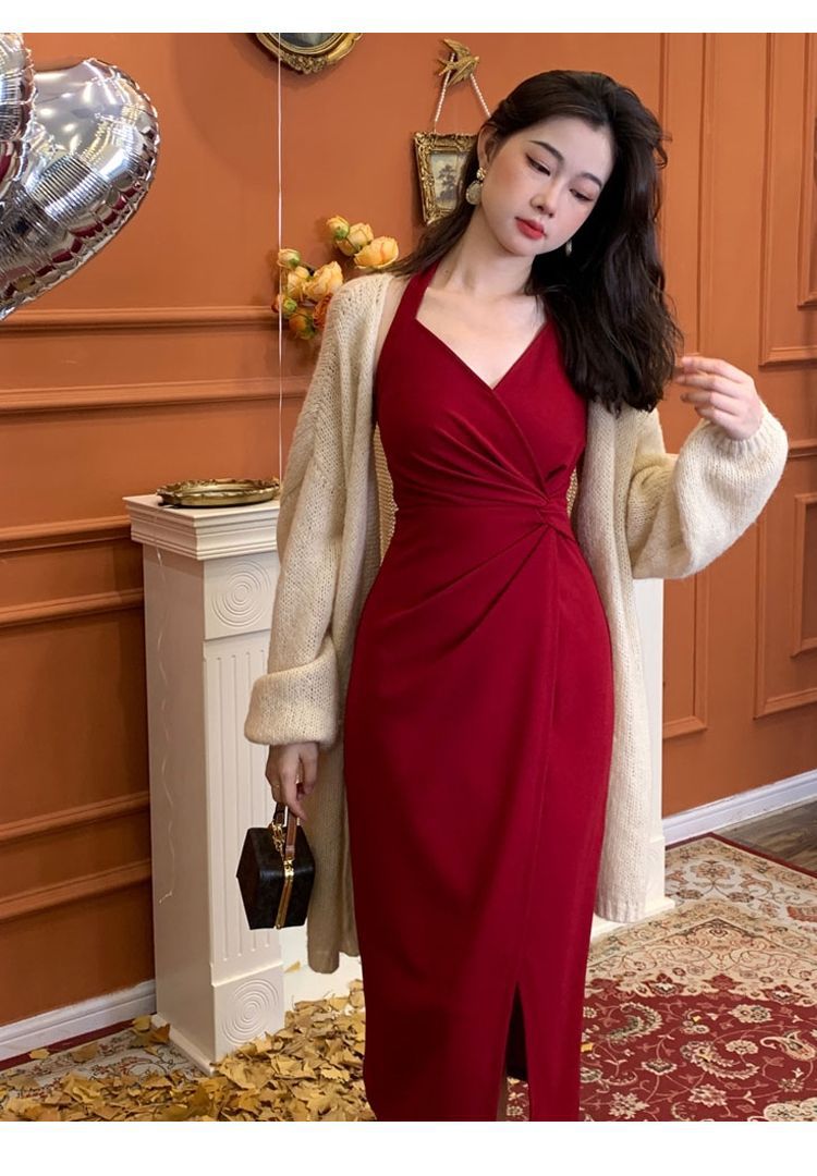 새로운 중국 스타일 레트로 넥 원피스 여성의 가을과 겨울 니트 스웨터 투피스 세트스토어 가기