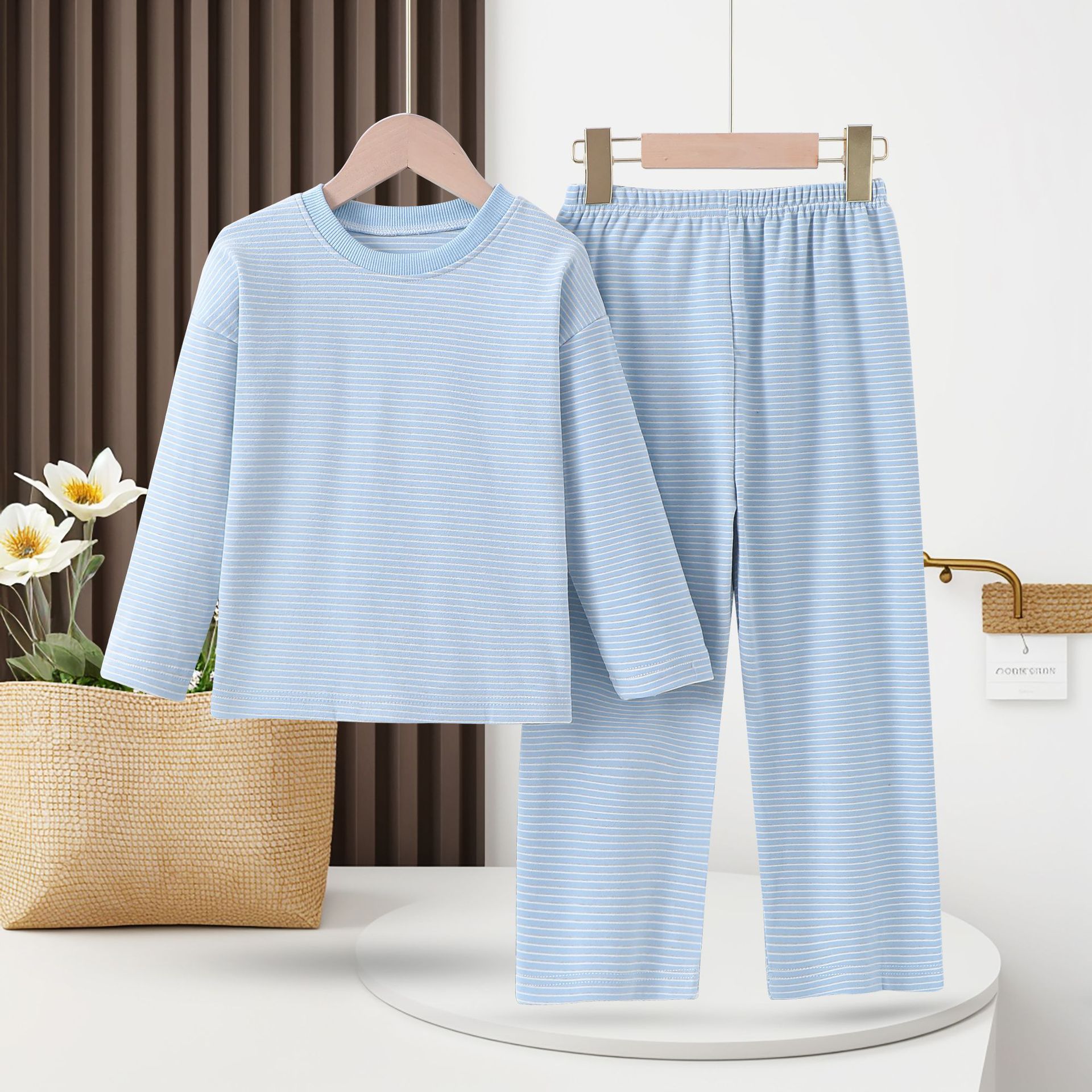 2024 새로운 여아 잠옷 여름 어린이 소년 반팔 얇은 작은 소녀의 큰 어린이 여름 홈 의류 세트