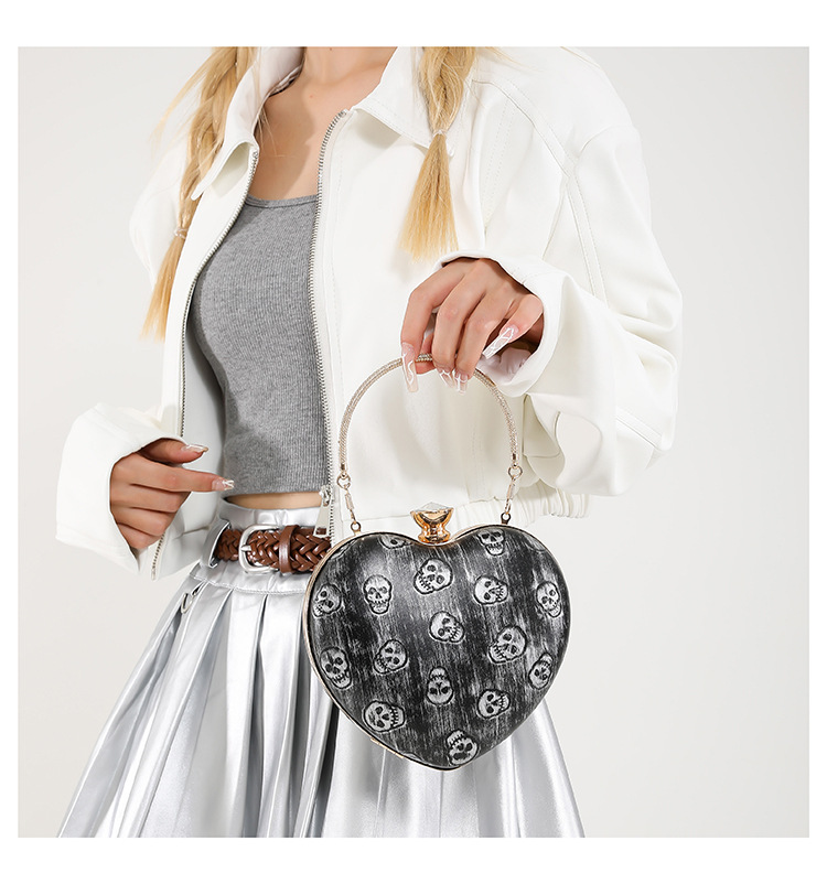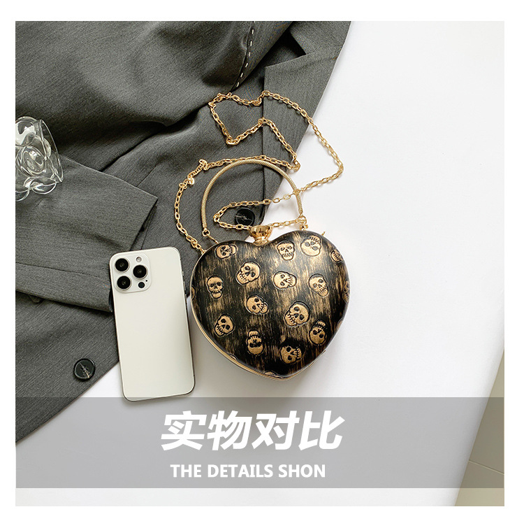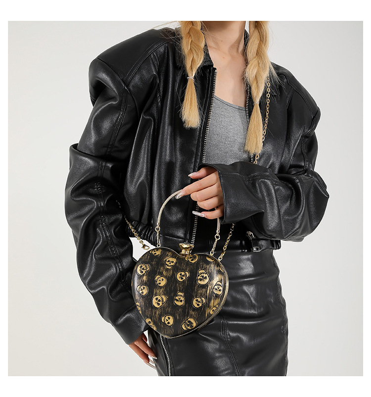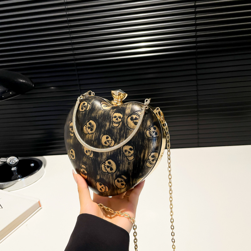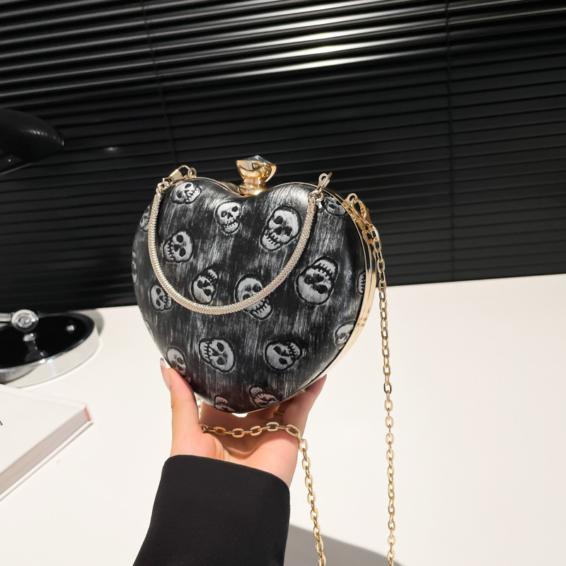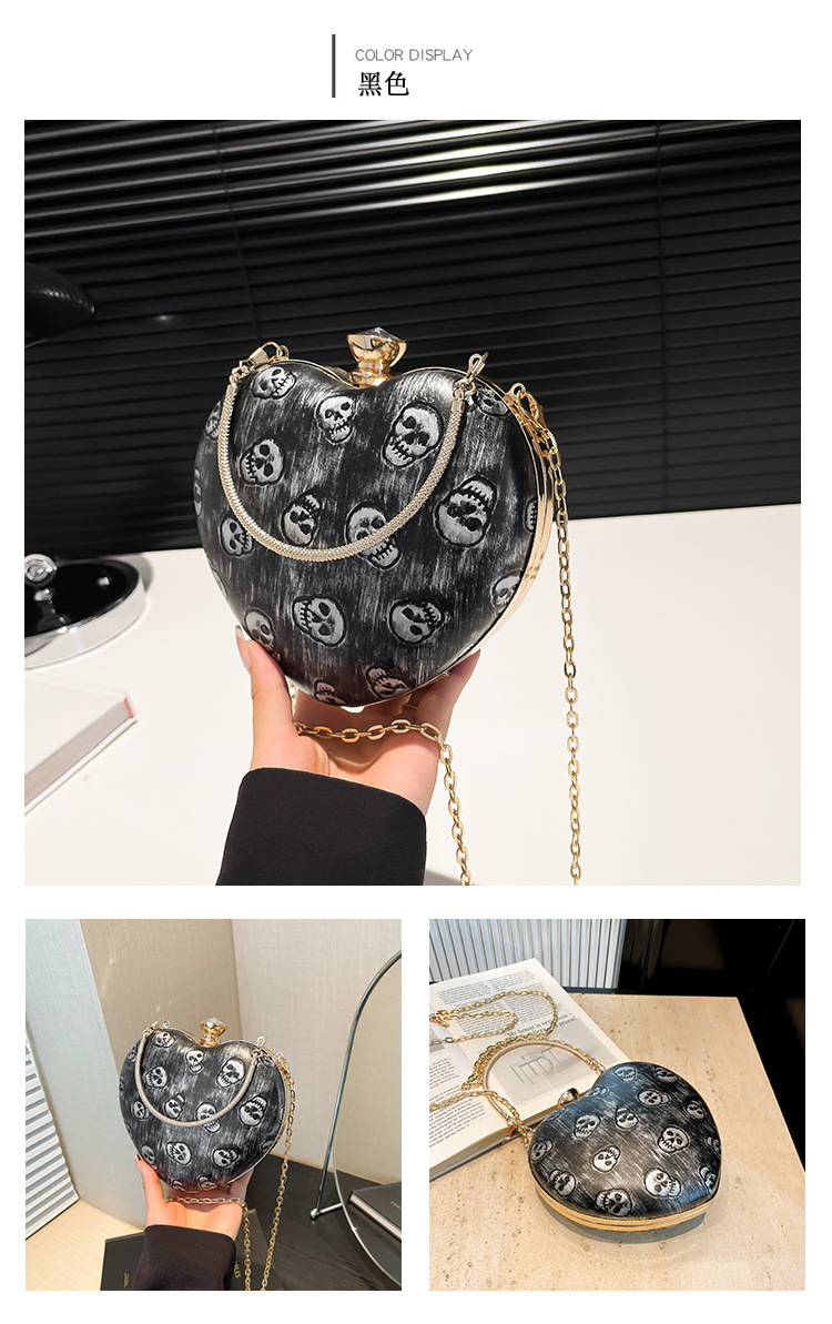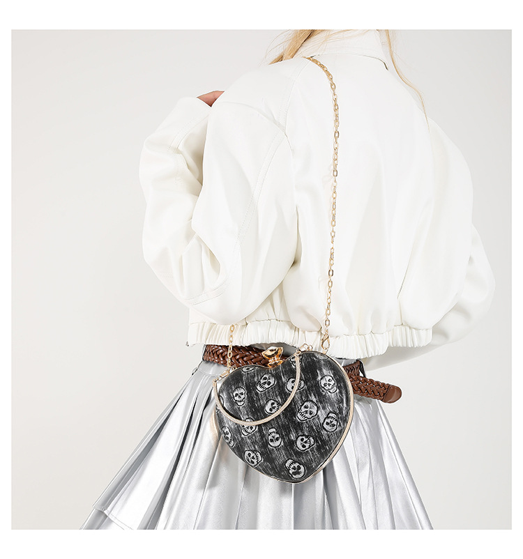 독특한 해골 고딕 다크 스타일 러브 백 여성 가방 2024 새로운 패션 핫 걸 체인 휴대용 크로스 바디 백