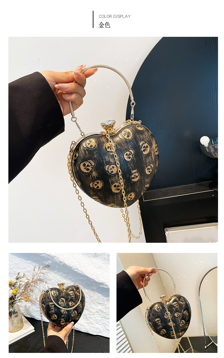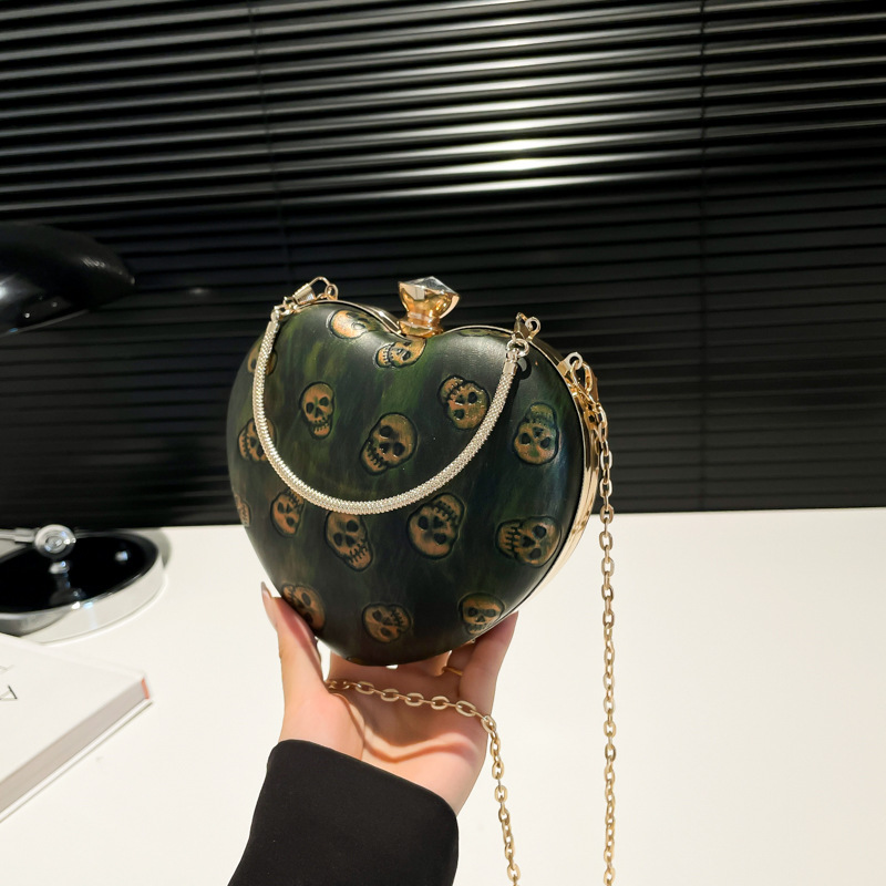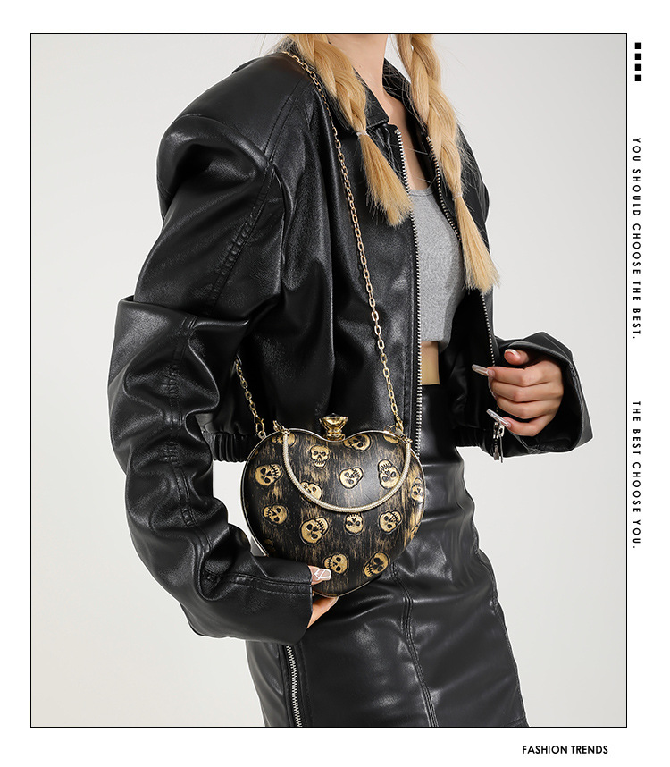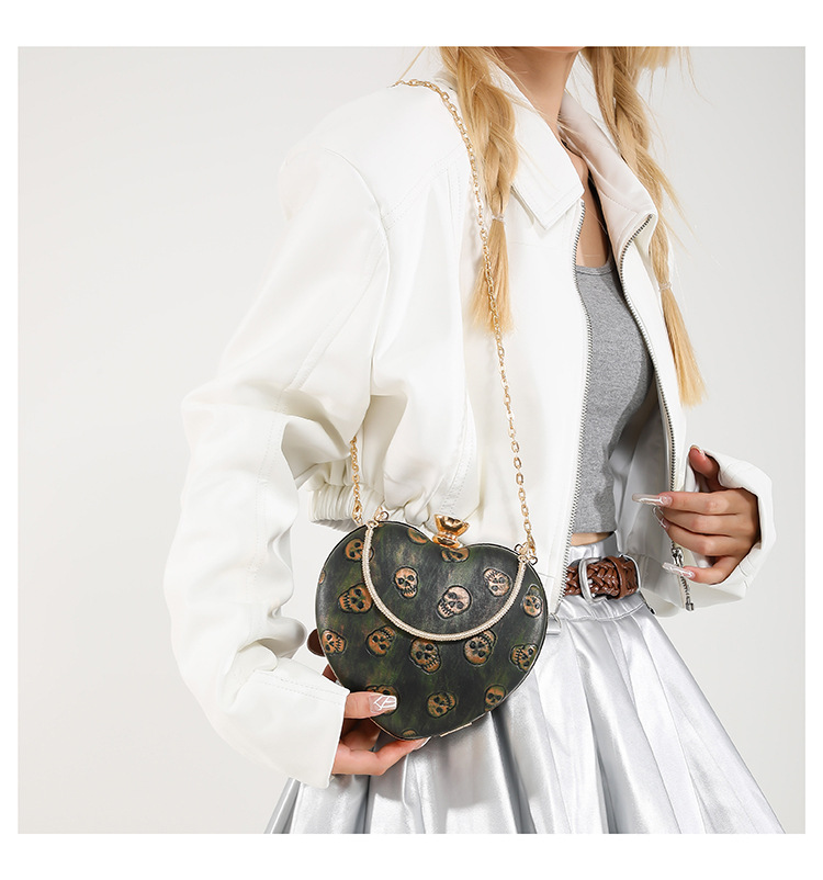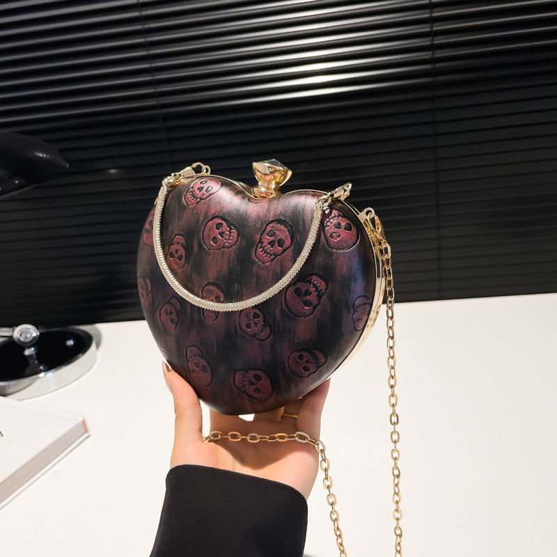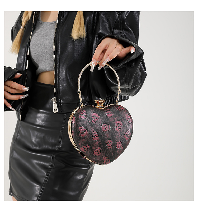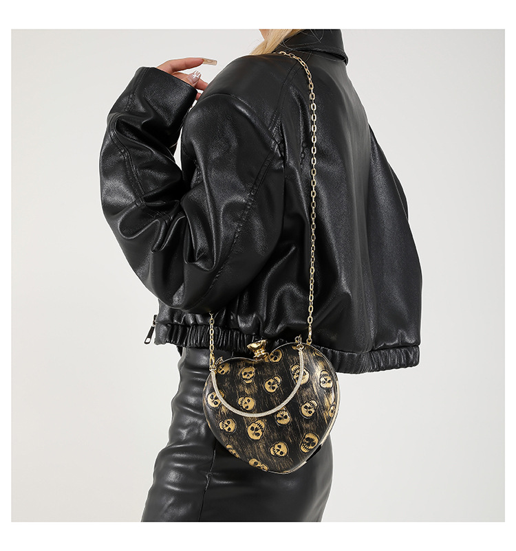 독특한 해골 고딕 다크 스타일 러브 백 여성 가방 2024 새로운 패션 핫 걸 체인 휴대용 크로스 바디 백