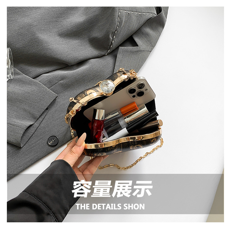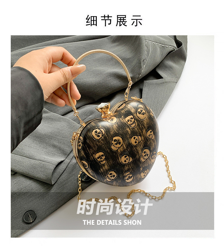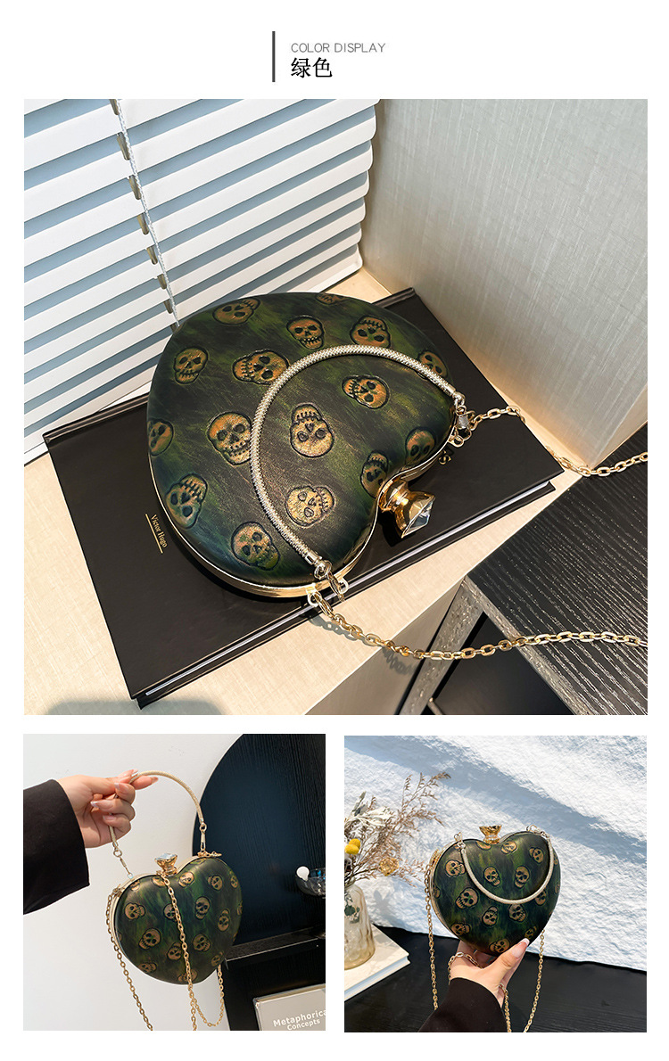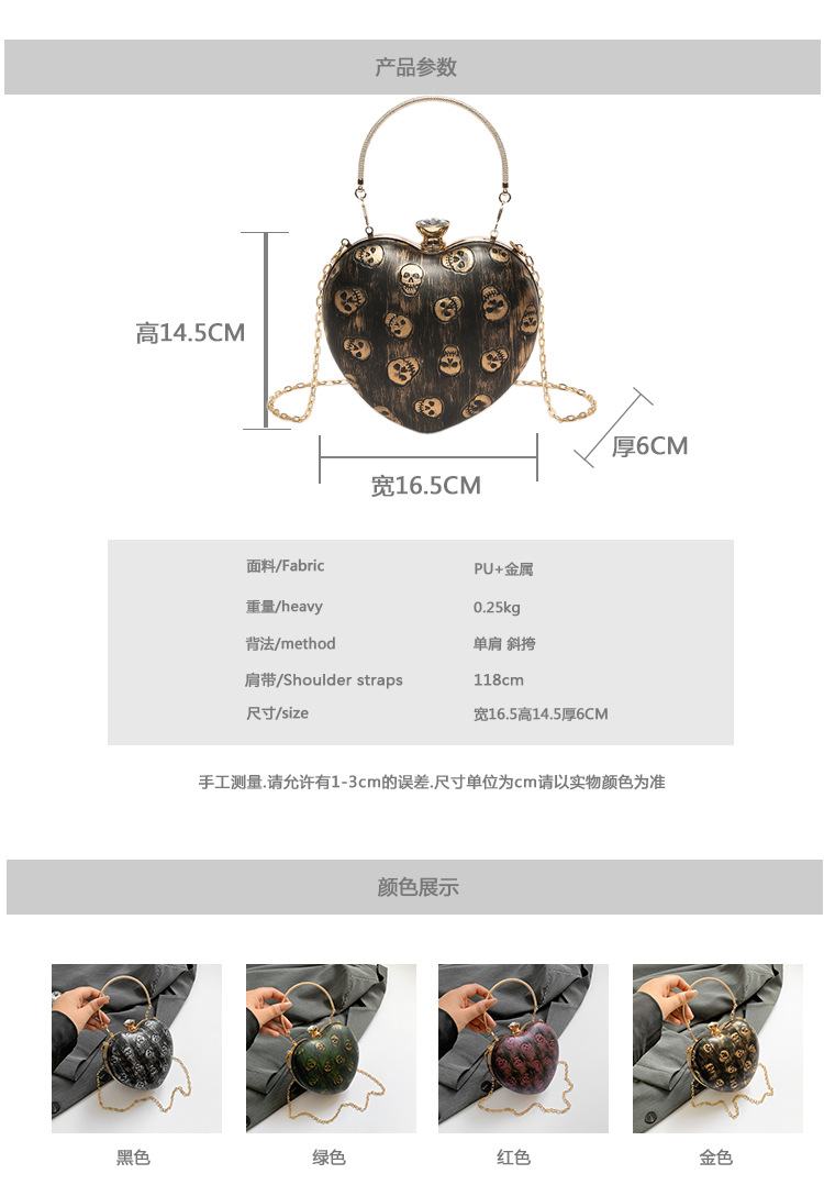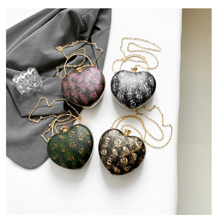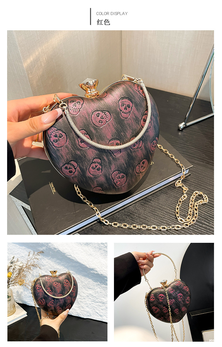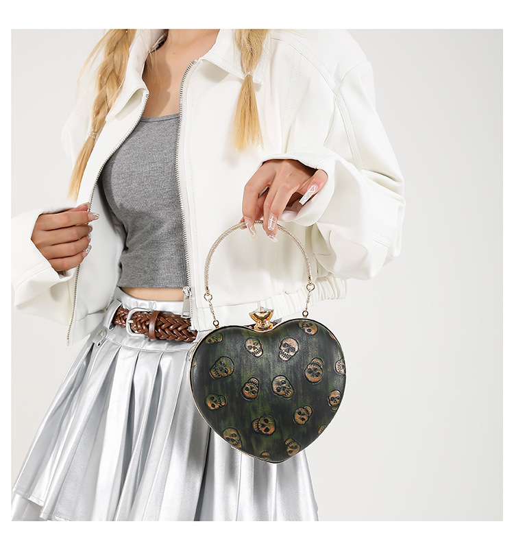 독특한 해골 고딕 다크 스타일 러브 백 여성 가방 2024 새로운 패션 핫 걸 체인 휴대용 크로스 바디 백