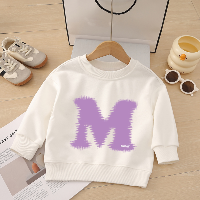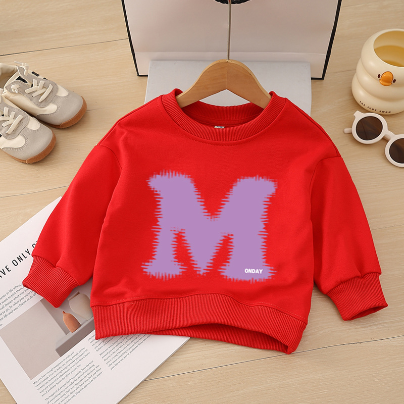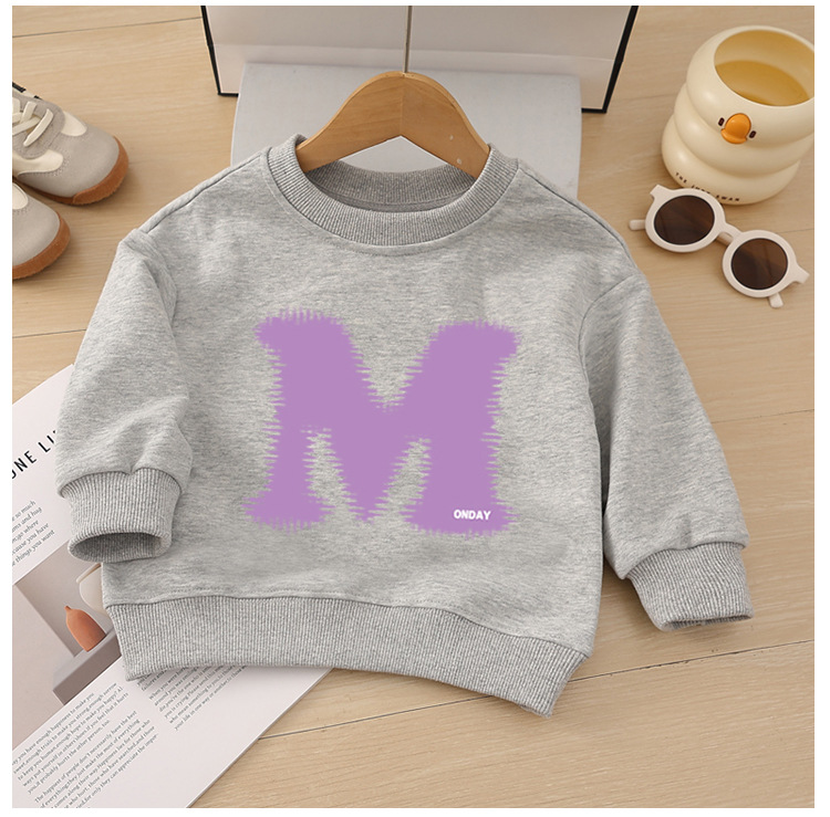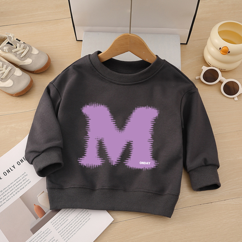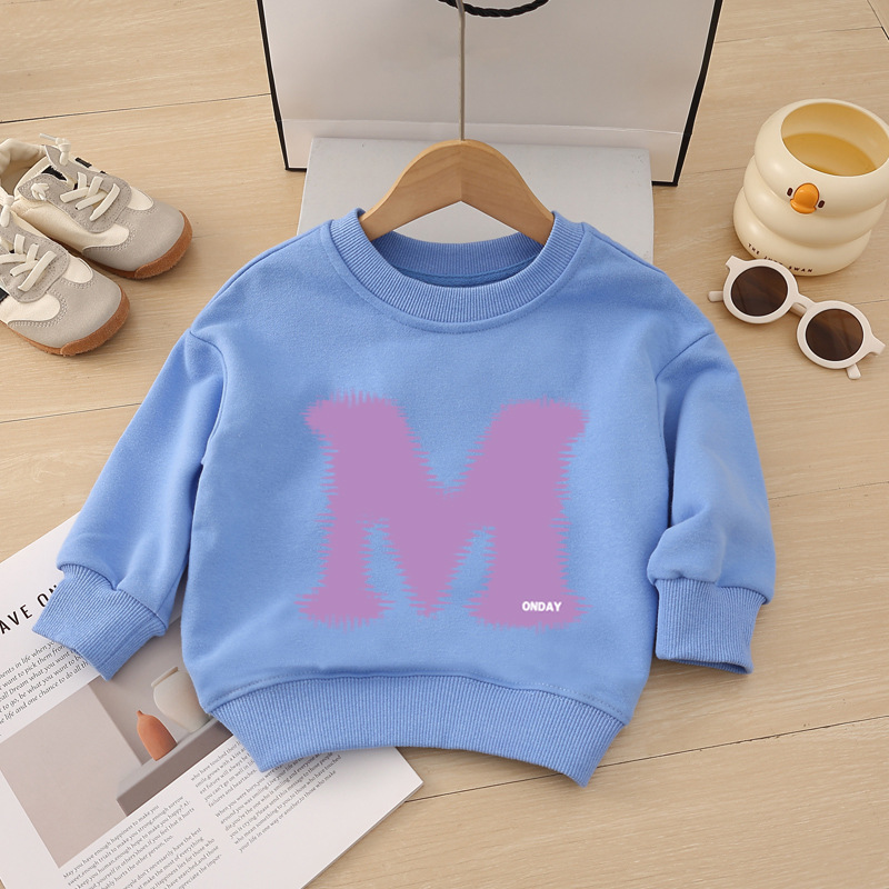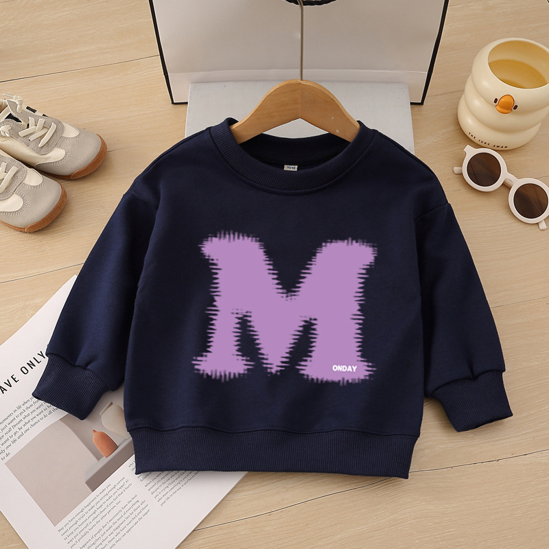 소년 운동복 봄, 가을 2025 새로운 스타일 중소형 어린이 스타일 문자 M 인쇄 아동복 아기 라운드 넥 풀오버