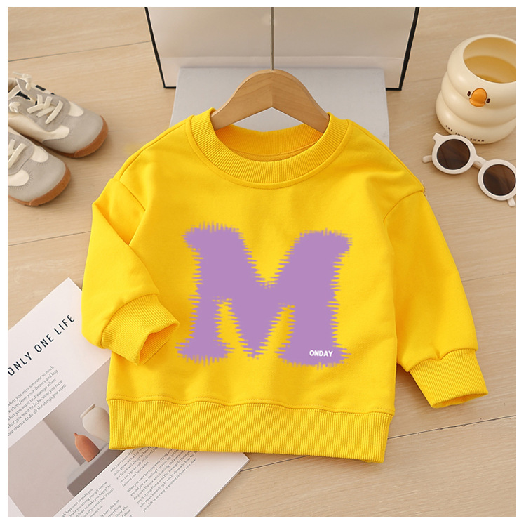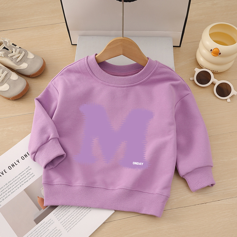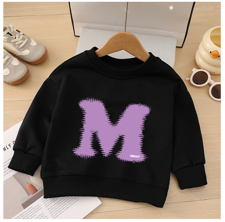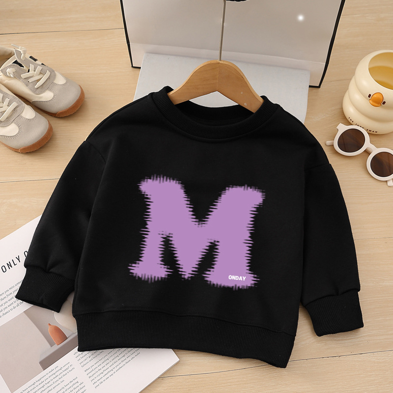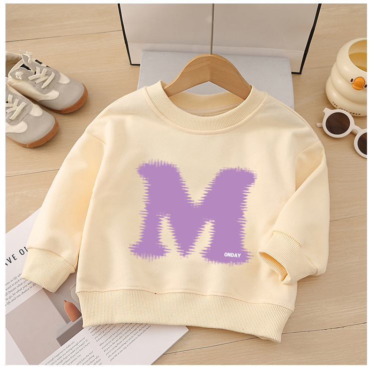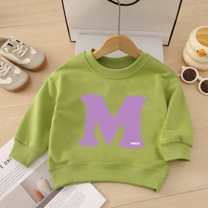 소년 운동복 봄, 가을 2025 새로운 스타일 중소형 어린이 스타일 문자 M 인쇄 아동복 아기 라운드 넥 풀오버