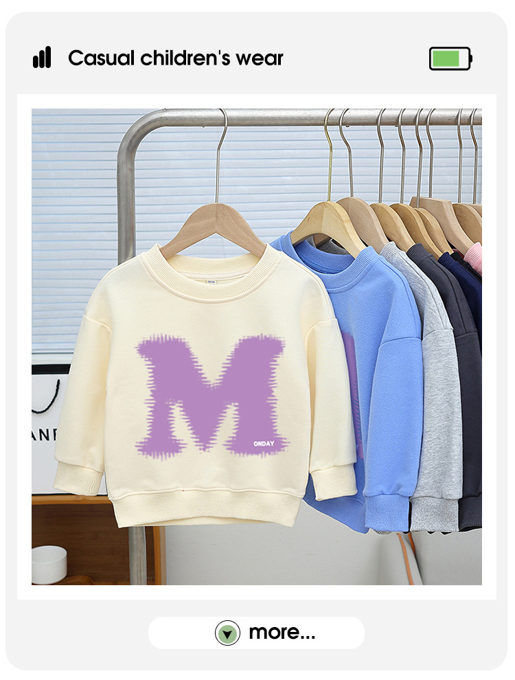 소년 운동복 봄, 가을 2025 새로운 스타일 중소형 어린이 스타일 문자 M 인쇄 아동복 아기 라운드 넥 풀오버스토어 가기