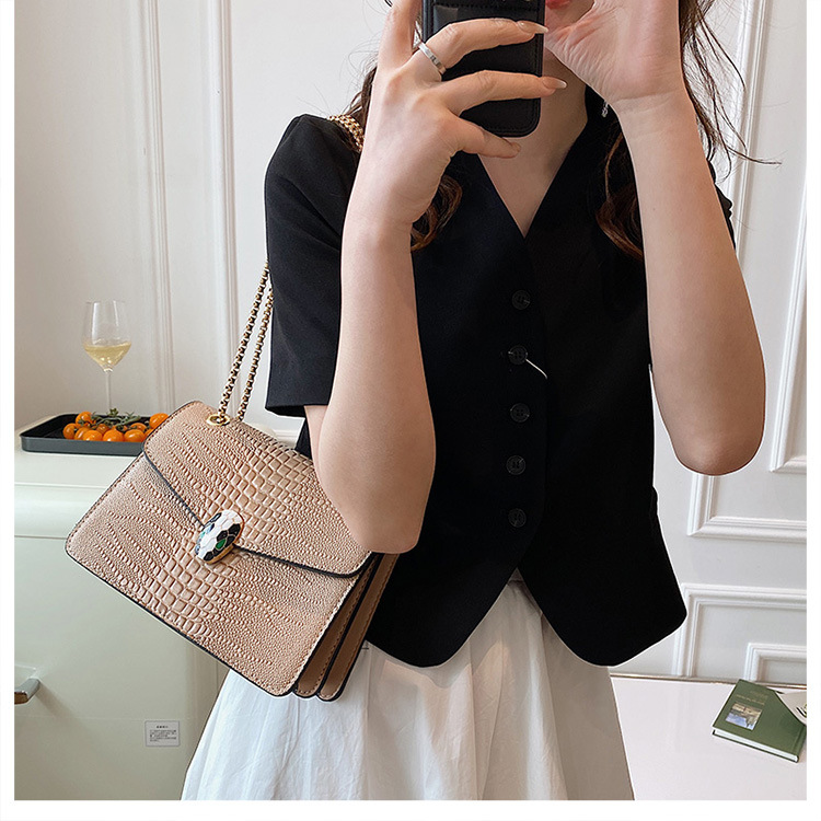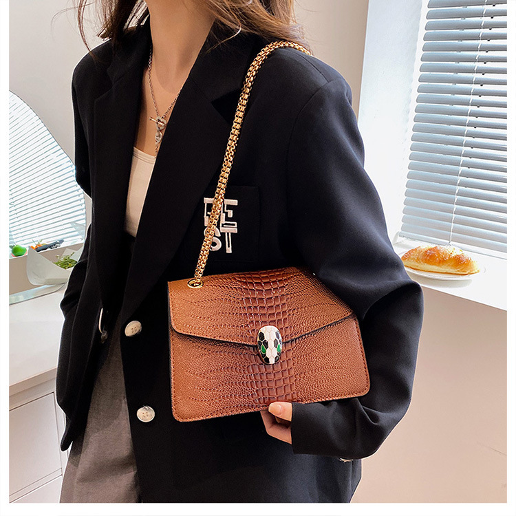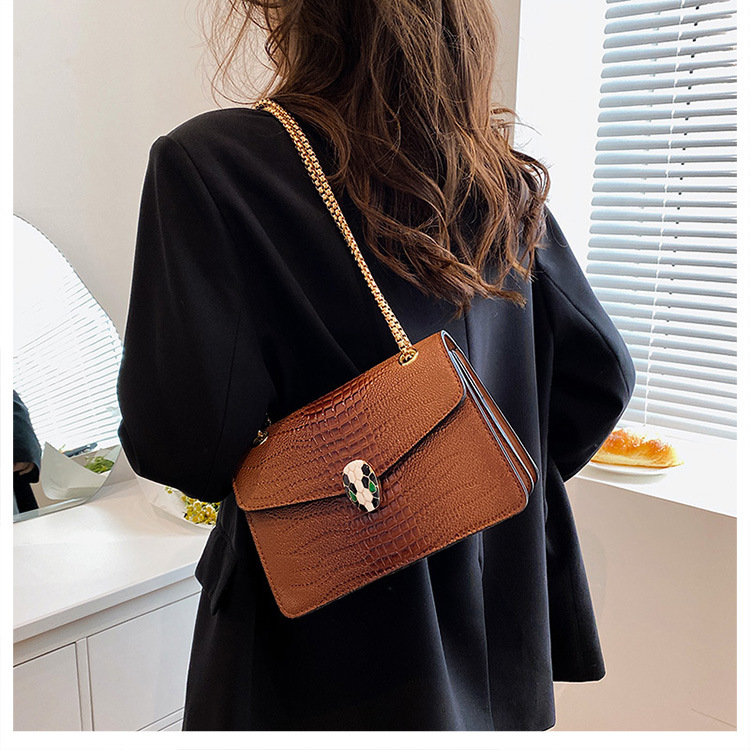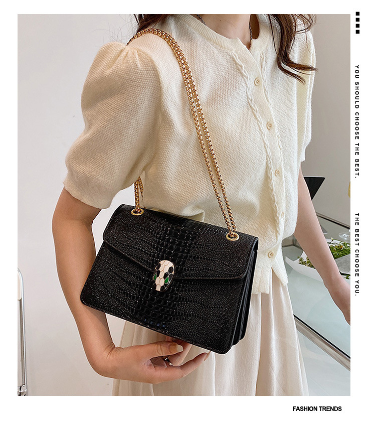 악어 패턴 여성용 가방 유행 유행 유럽과 미국의 어깨 가방 서양식 크로스 바디 작은 가방 언더암 가방 유행 체인 작은 사각형 가방스토어 가기