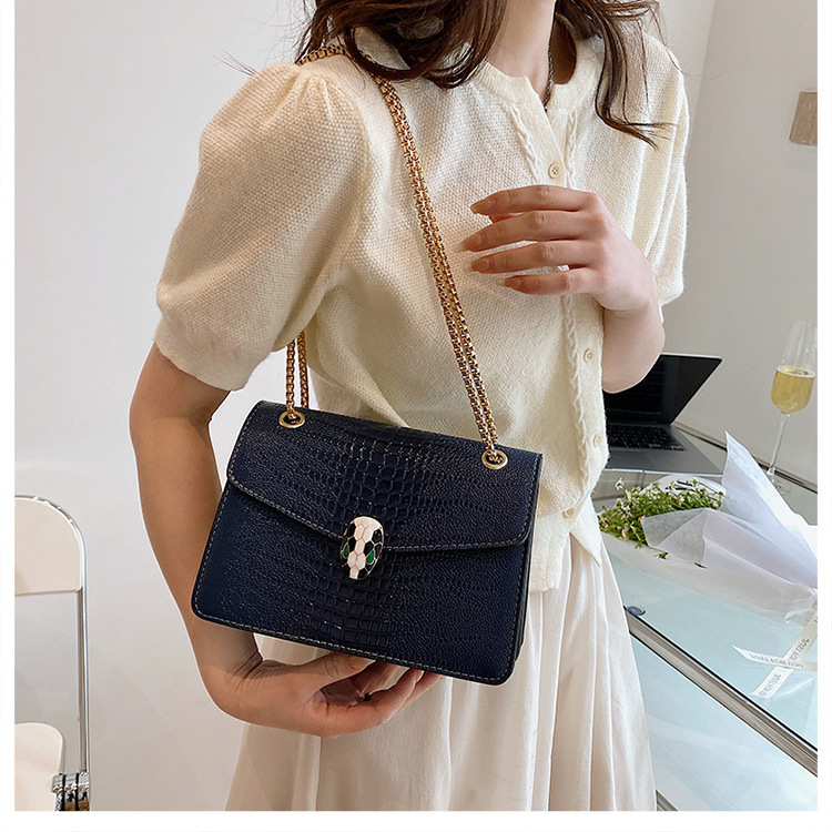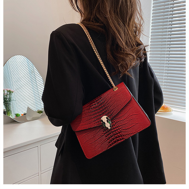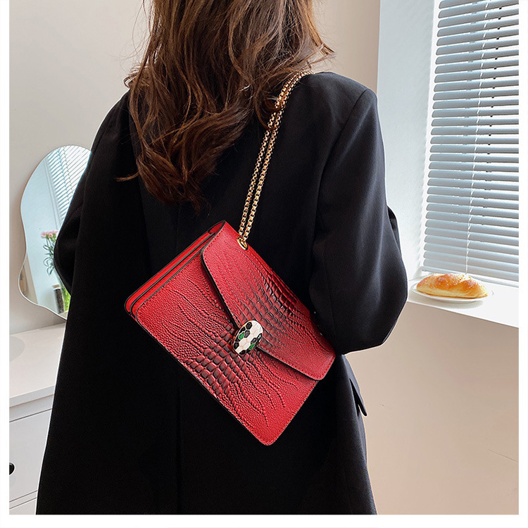 악어 패턴 여성용 가방 유행 유행 유럽과 미국의 어깨 가방 서양식 크로스 바디 작은 가방 언더암 가방 유행 체인 작은 사각형 가방