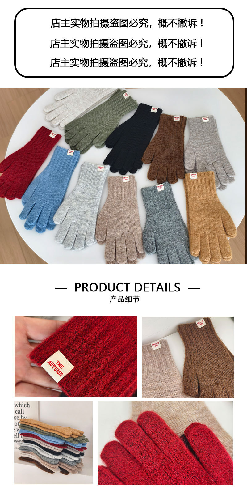 가을과 겨울 솔리드 컬러 울 니트 장갑 한국 스타일 라벨 핑거 장갑 터치 스크린 엑소 손가락 남성 및 여성 사이클링 방풍과 따뜻한스토어 가기