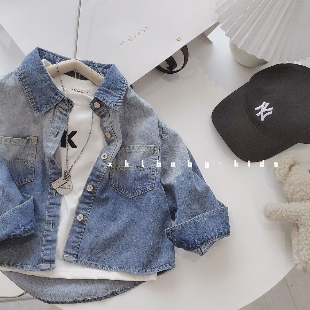 남학생 신형 데님 셔츠 어린이 외투 봄 · 가을 한국식 탑 어린이 트렌디 그라디언트 셔츠 기지스토어 가기