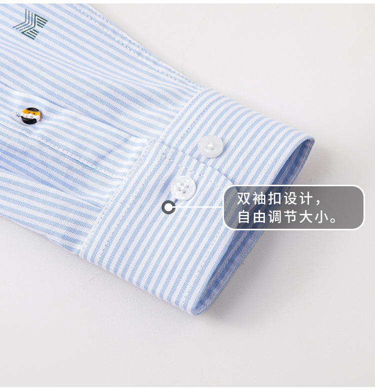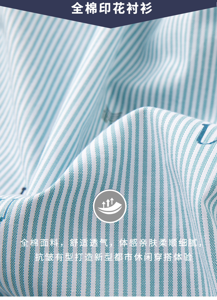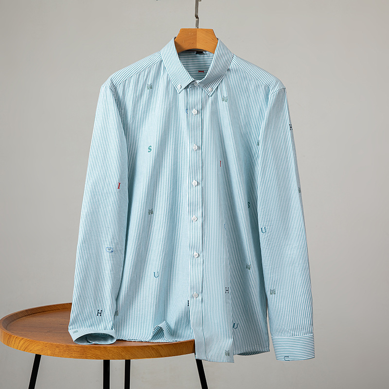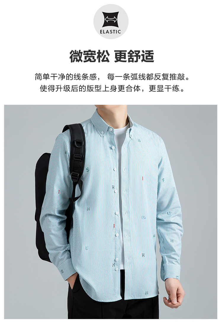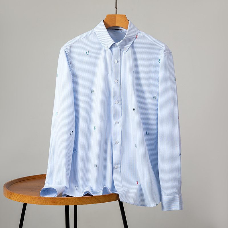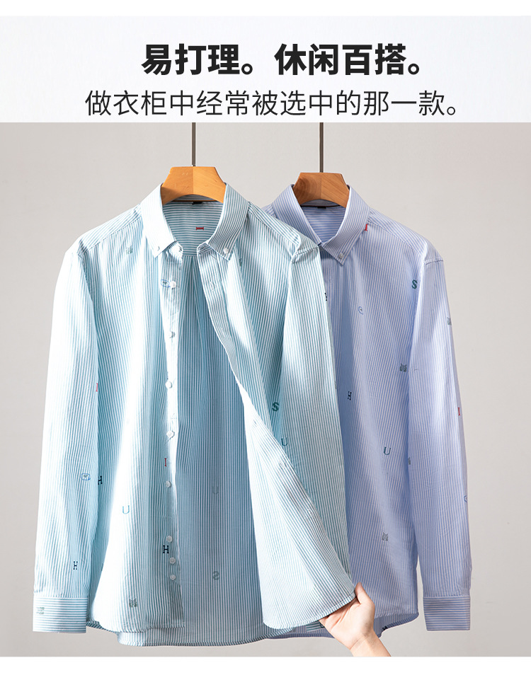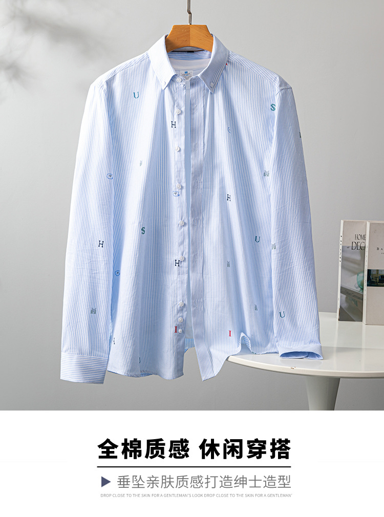 새로운 봄과 가을면 긴 소매 셔츠 남성용 비즈니스 블루 스트라이프 캐주얼 올 매치 통기성 프린트 셔츠스토어 가기