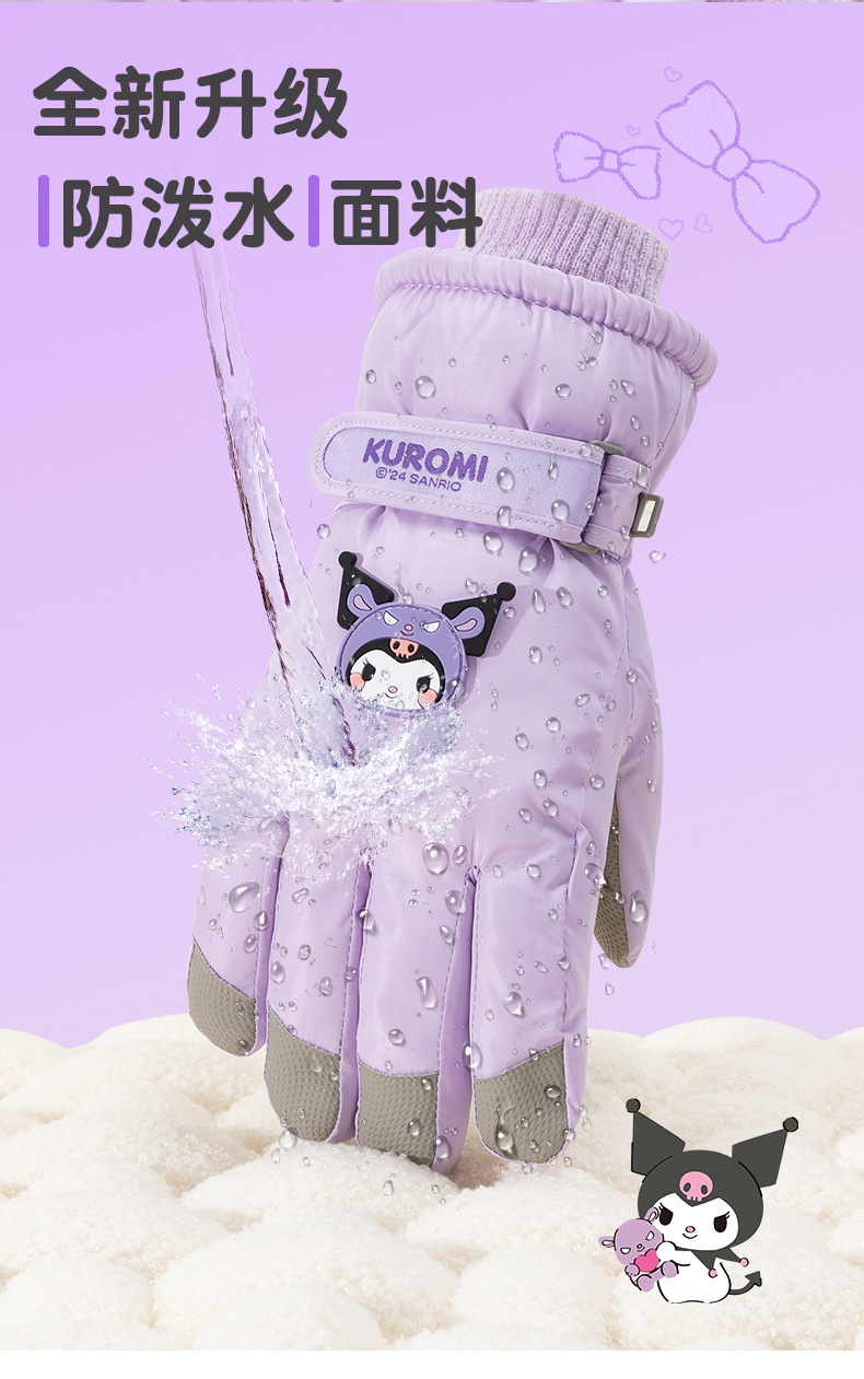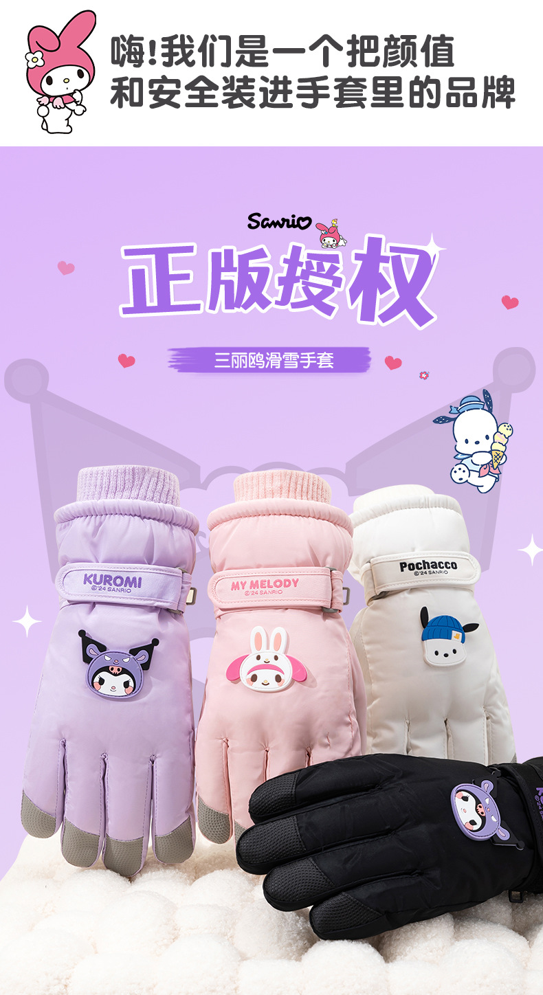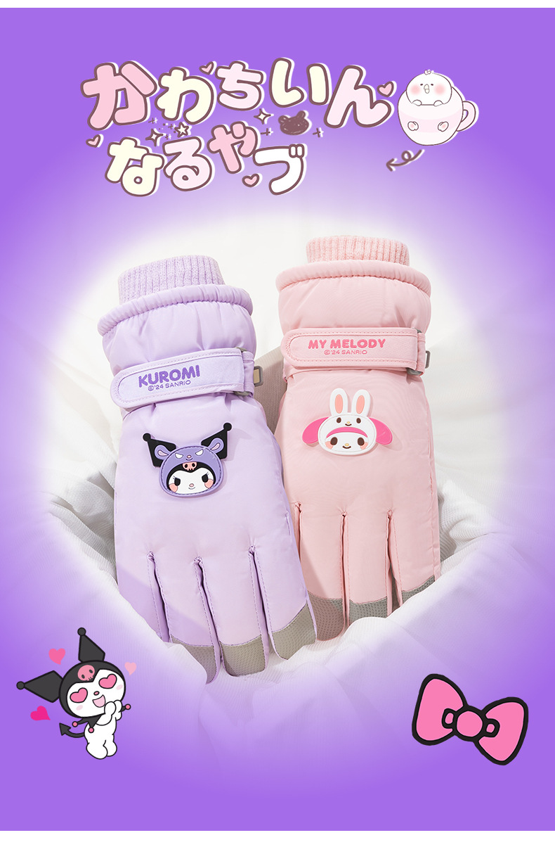 산리오 정품 터치 스크린 기모 두꺼운 따뜻한 다운 코튼 냉간 라이딩 미끄럼 방지 야외 겨울 스키 장갑