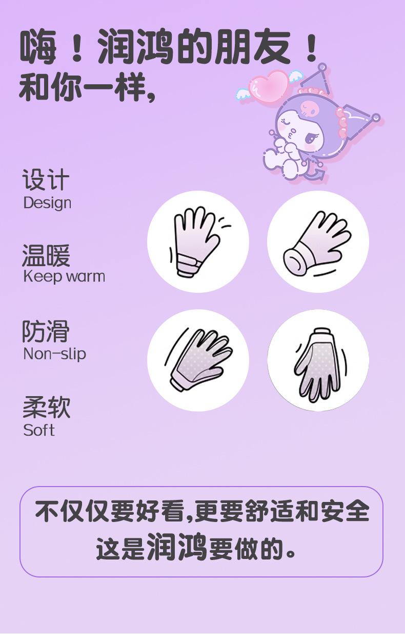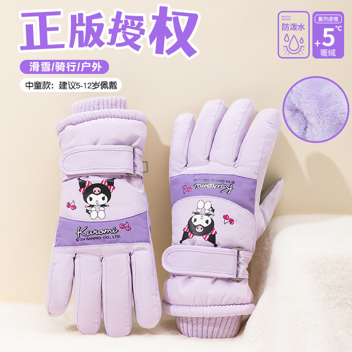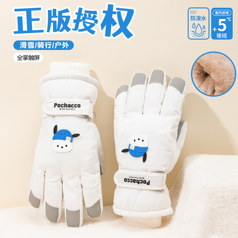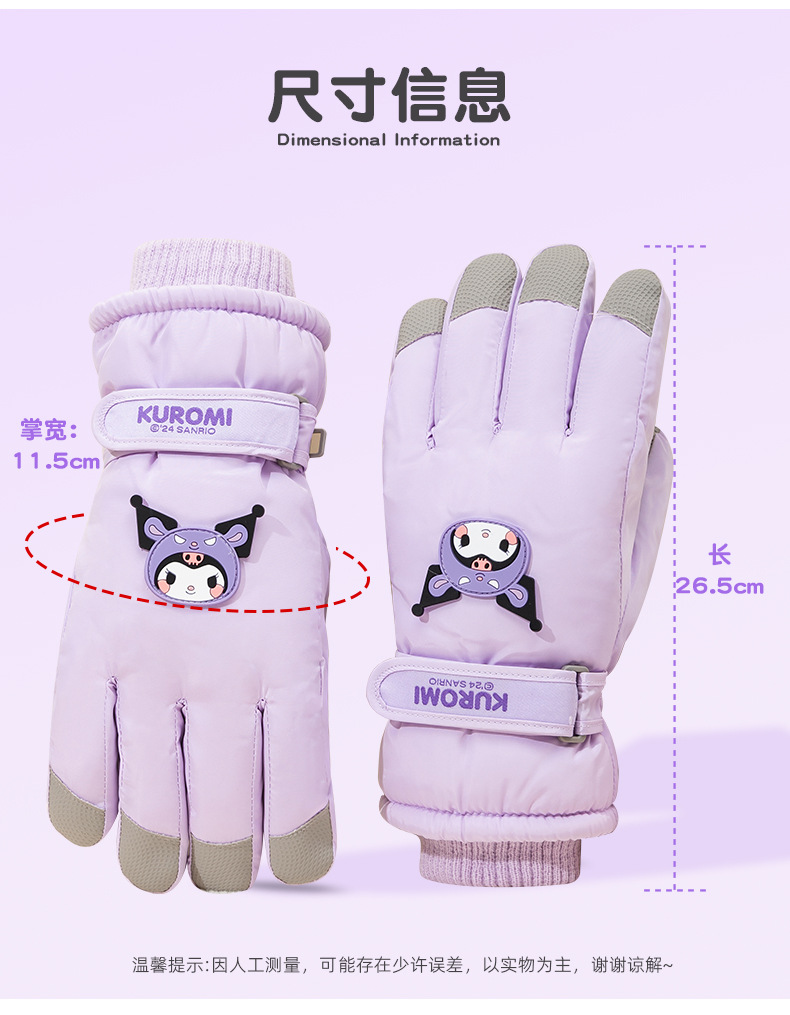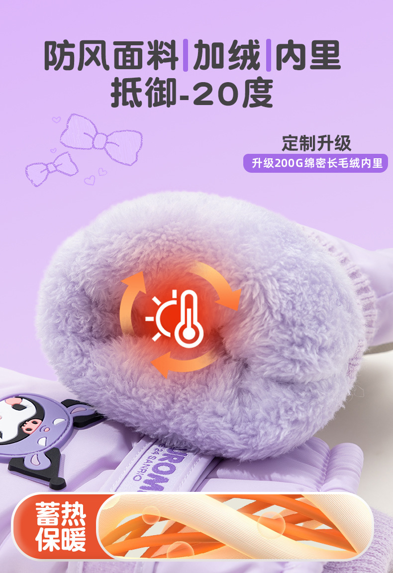 산리오 정품 터치 스크린 기모 두꺼운 따뜻한 다운 코튼 냉간 라이딩 미끄럼 방지 야외 겨울 스키 장갑