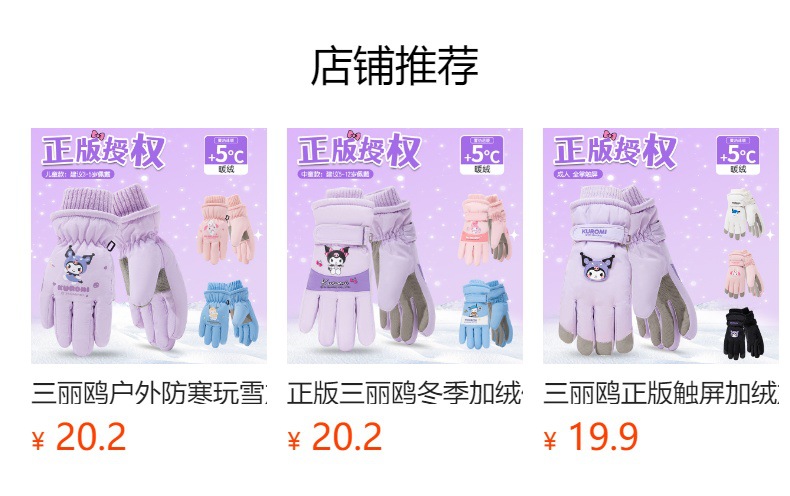 산리오 정품 터치 스크린 기모 두꺼운 따뜻한 다운 코튼 냉간 라이딩 미끄럼 방지 야외 겨울 스키 장갑스토어 가기
