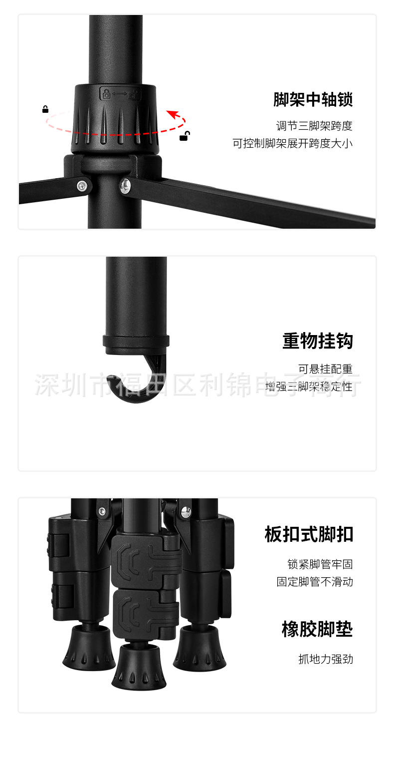 F-3670 밤 낚시 가벼운 삼각대 브래킷 1.68 m 휴대 전화 셀카 삼각대 브래킷 야외 낚시 가벼운 삼각대 브래킷