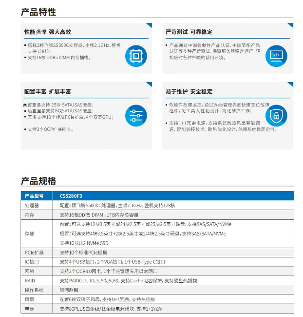 • 【CS5280F3】Feiteng S5000C*2/32G*4/3*4T/어레이/전원/레일
