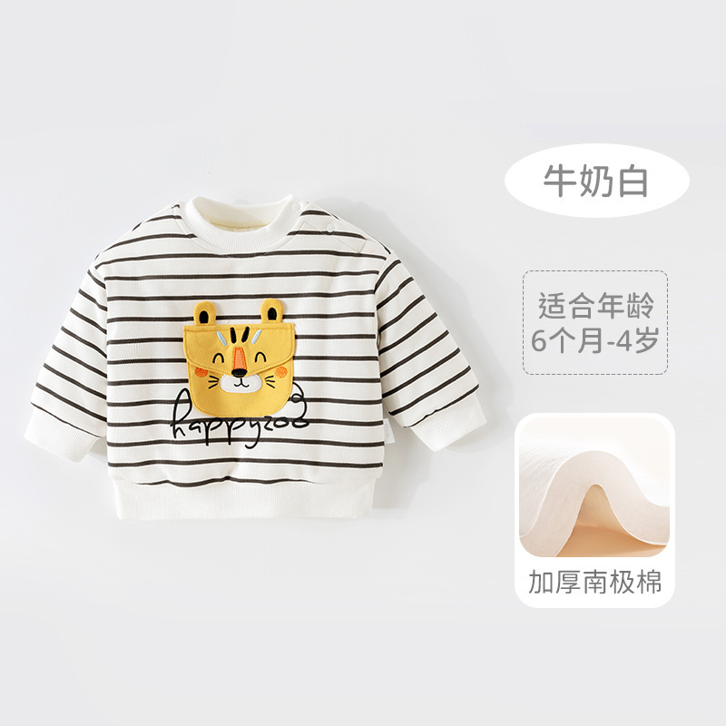아기 옷 남자와 여자의 아기 땀 두꺼운 아이들의 땀 긴 소매 줄무늬 따뜻한 외부 착용 싱글 탑 가을과 겨울