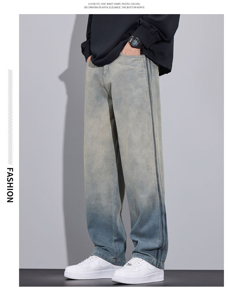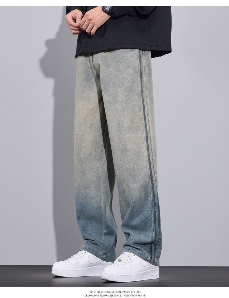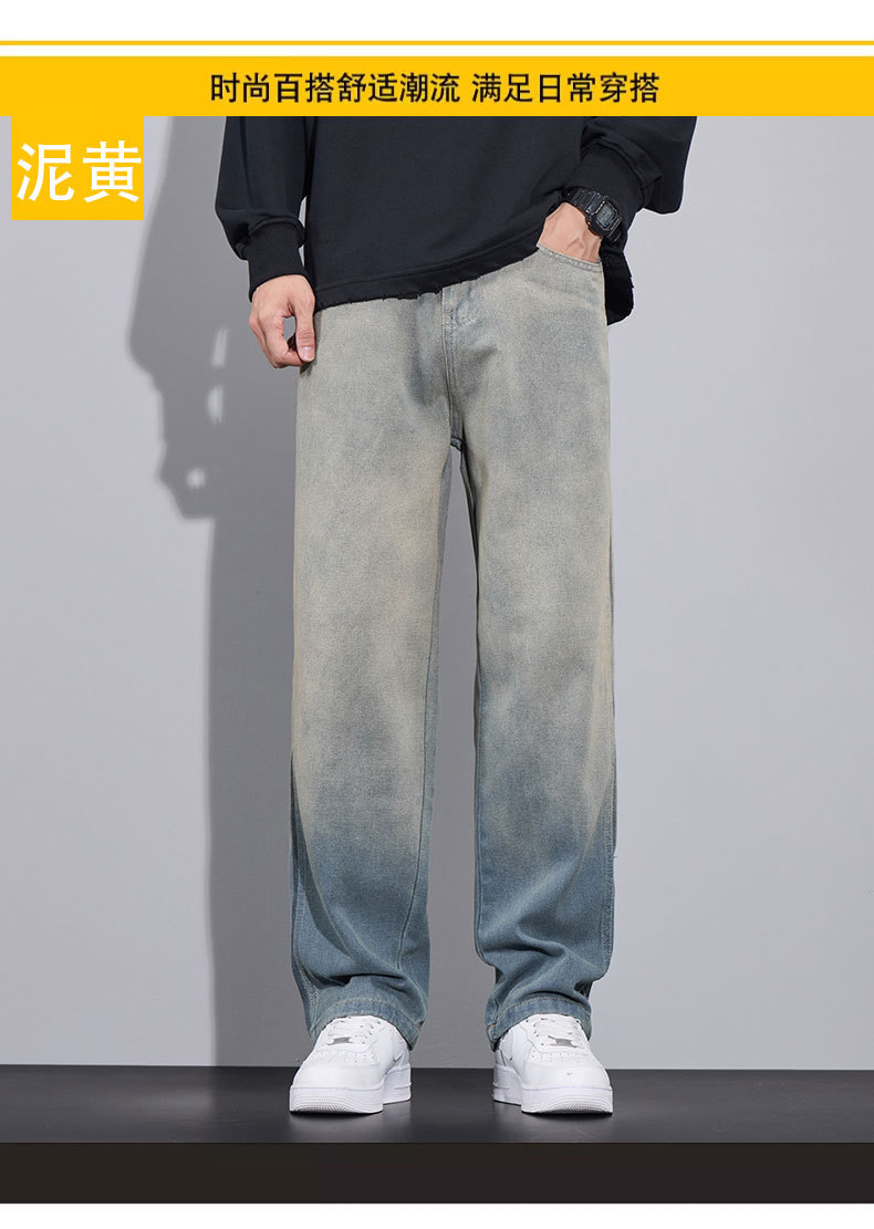 가을과 겨울 24 새로운 스트레이트 느슨한 유행 브랜드 넓은 다리 미국 스타일 하이 스트리트 패셔너블 캐주얼 청바지
