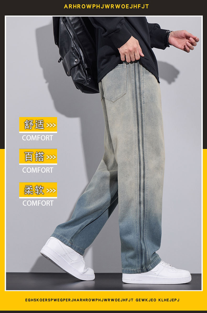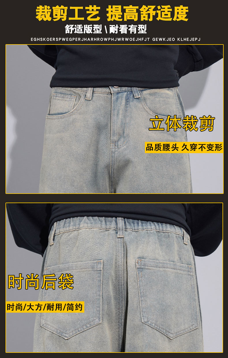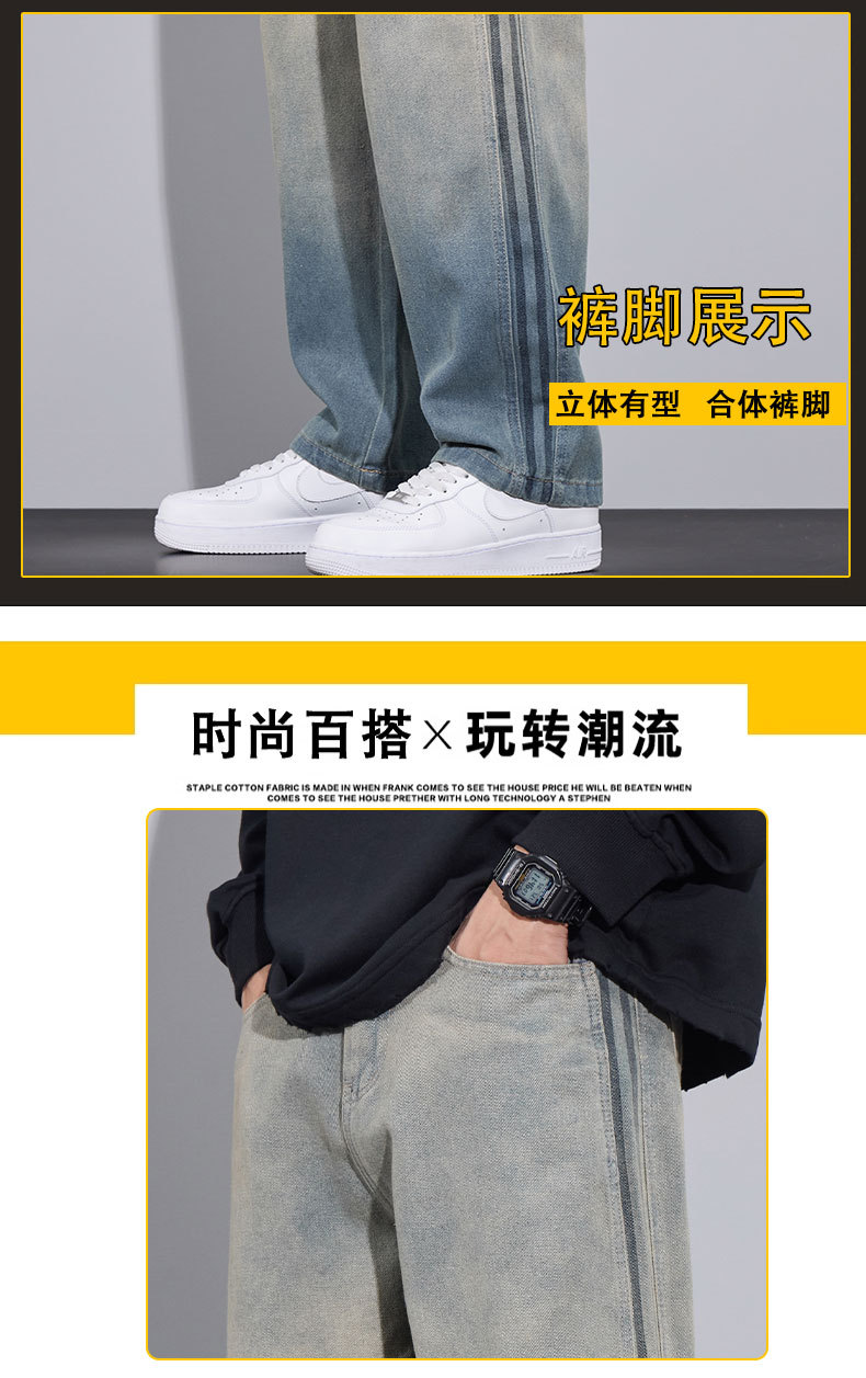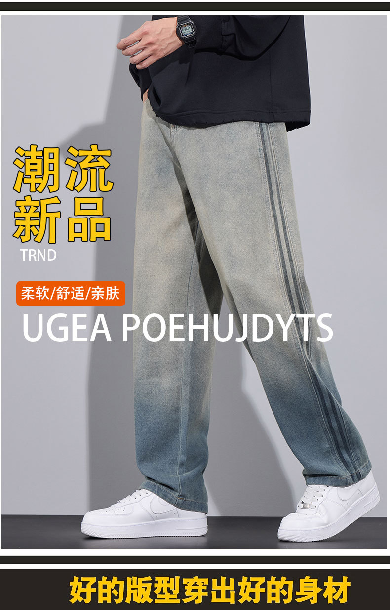 가을과 겨울 24 새로운 스트레이트 느슨한 유행 브랜드 넓은 다리 미국 스타일 하이 스트리트 패셔너블 캐주얼 청바지스토어 가기