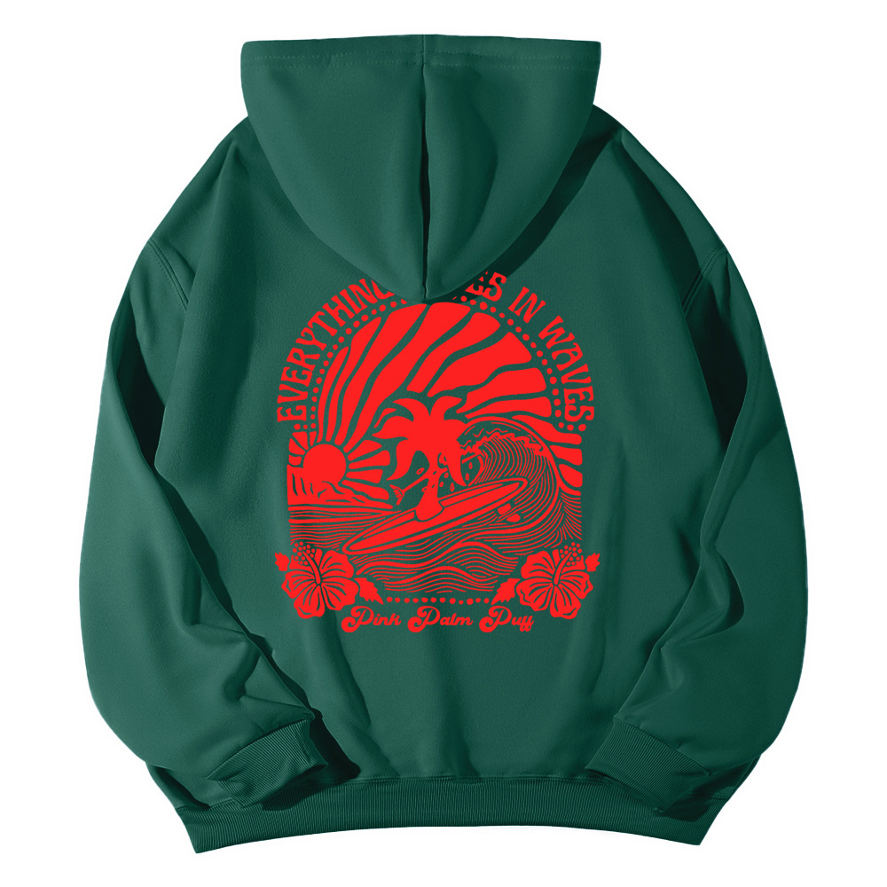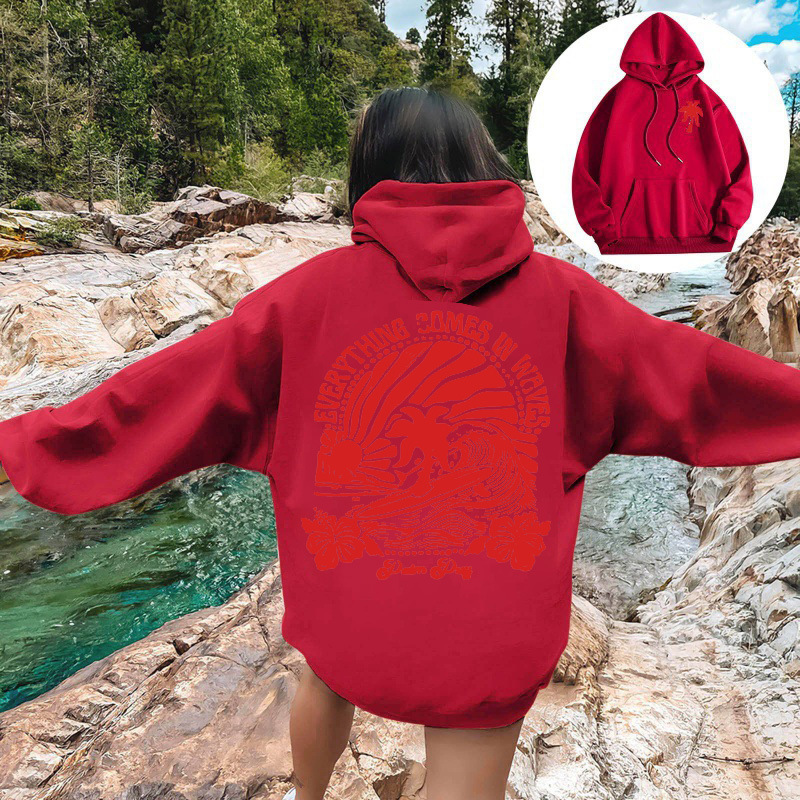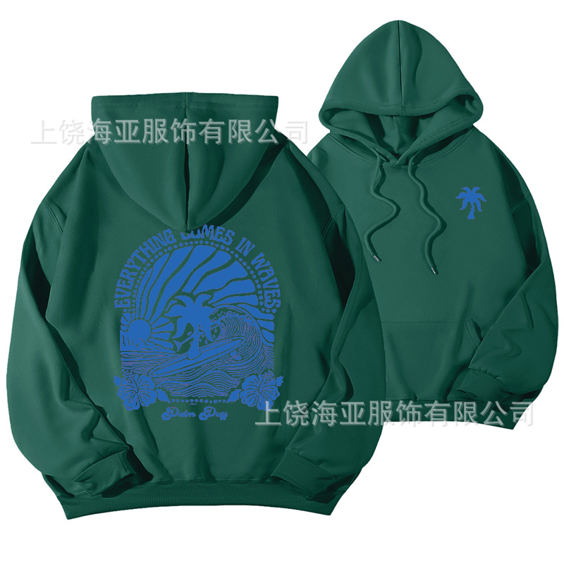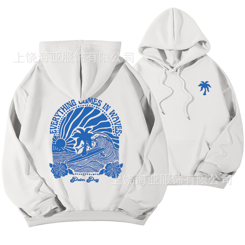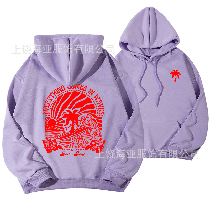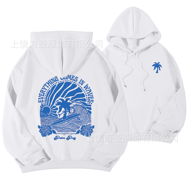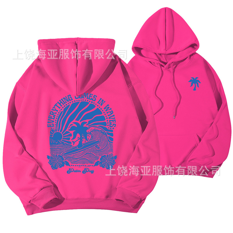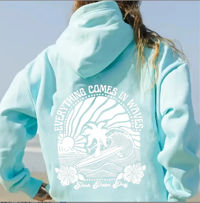 새 버전의 크로스보더 유럽 사이즈 여성용 드롭 숄더 슬리브 스레드 Chasing Sunsets 프린트 루즈 스웨트셔츠 후드티