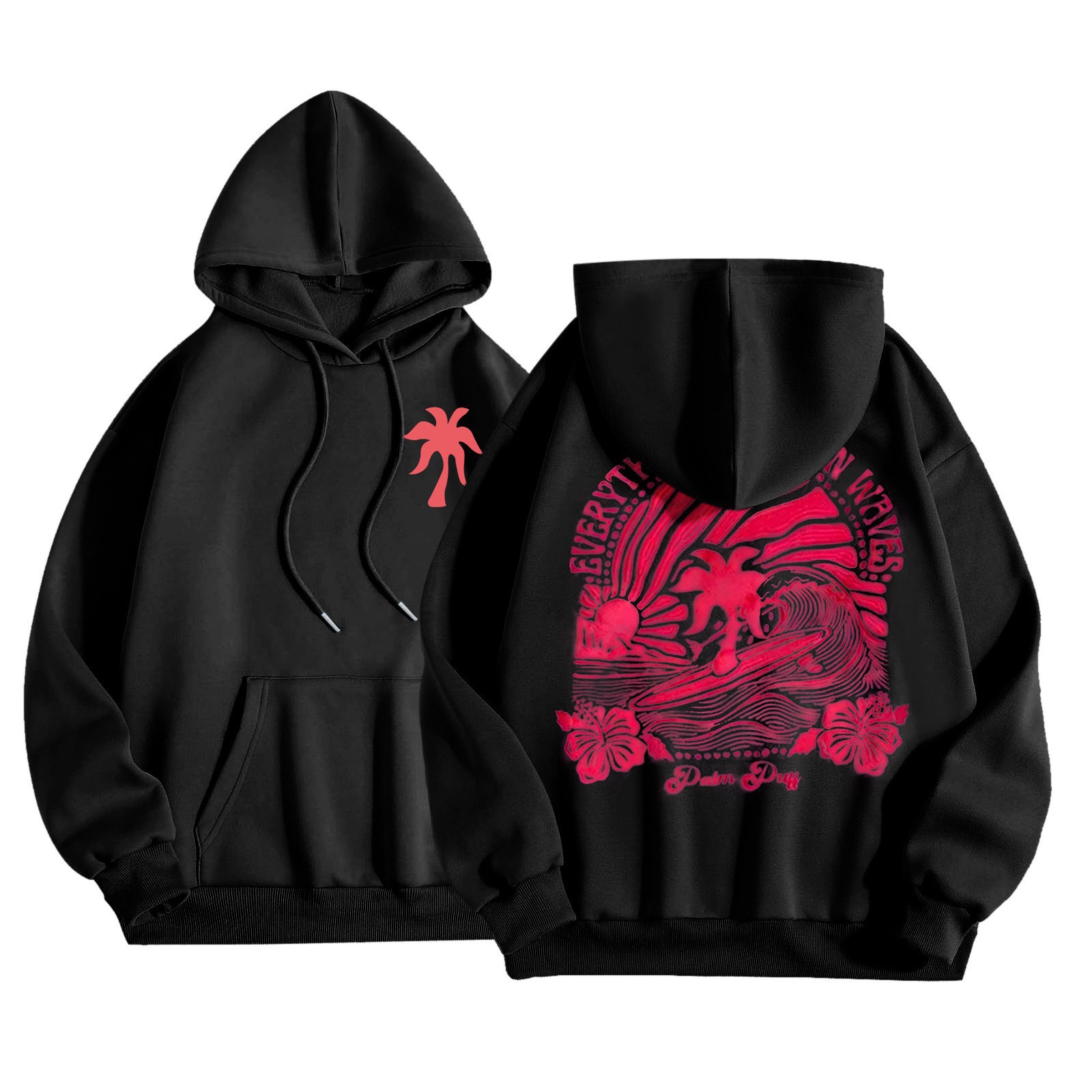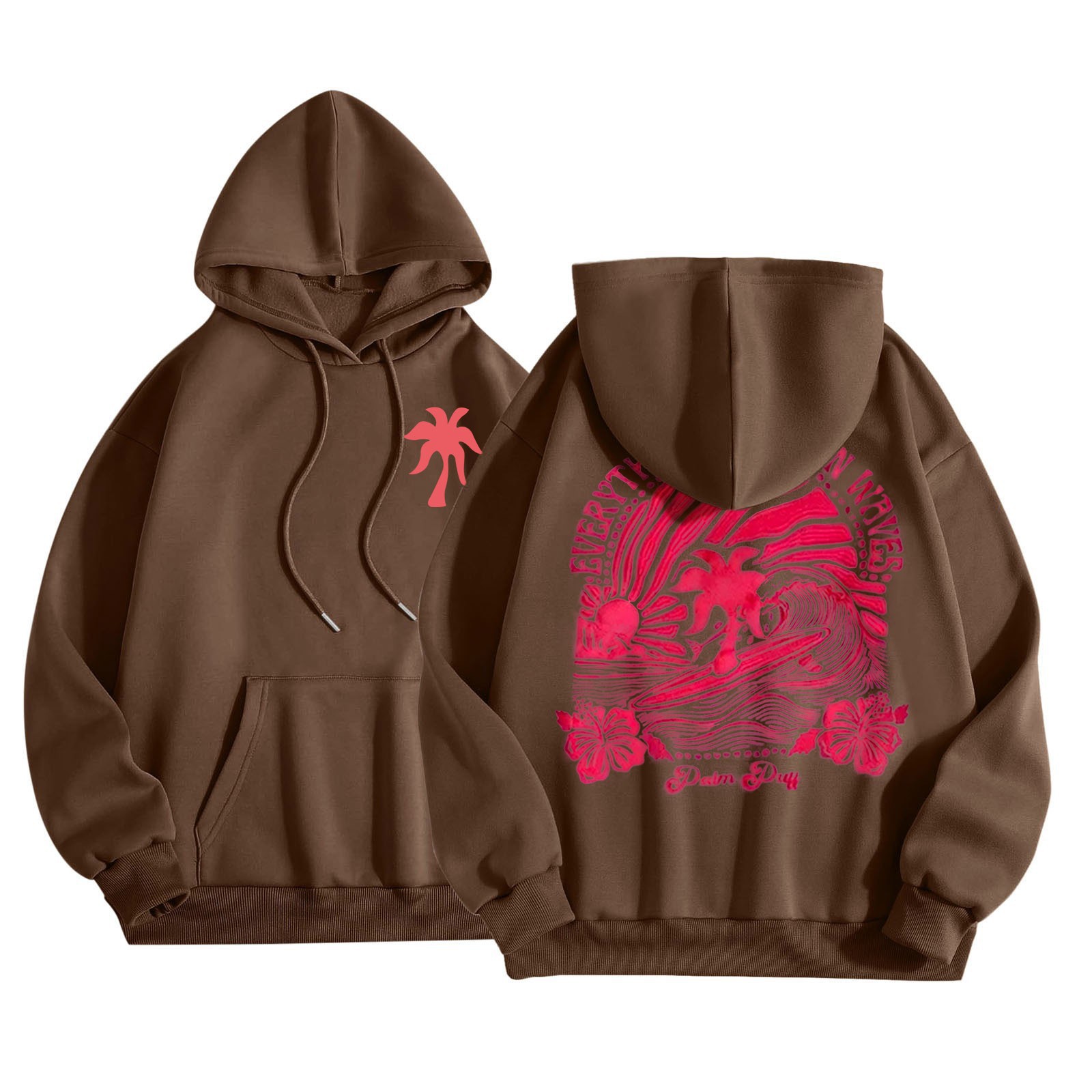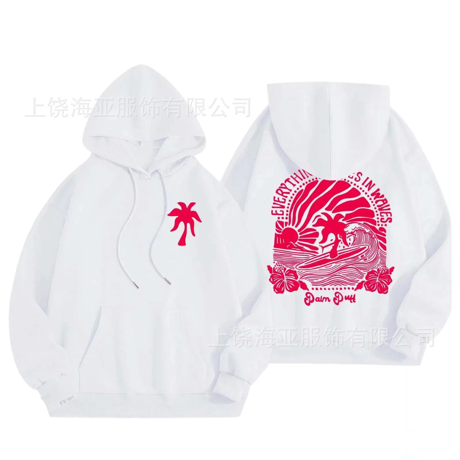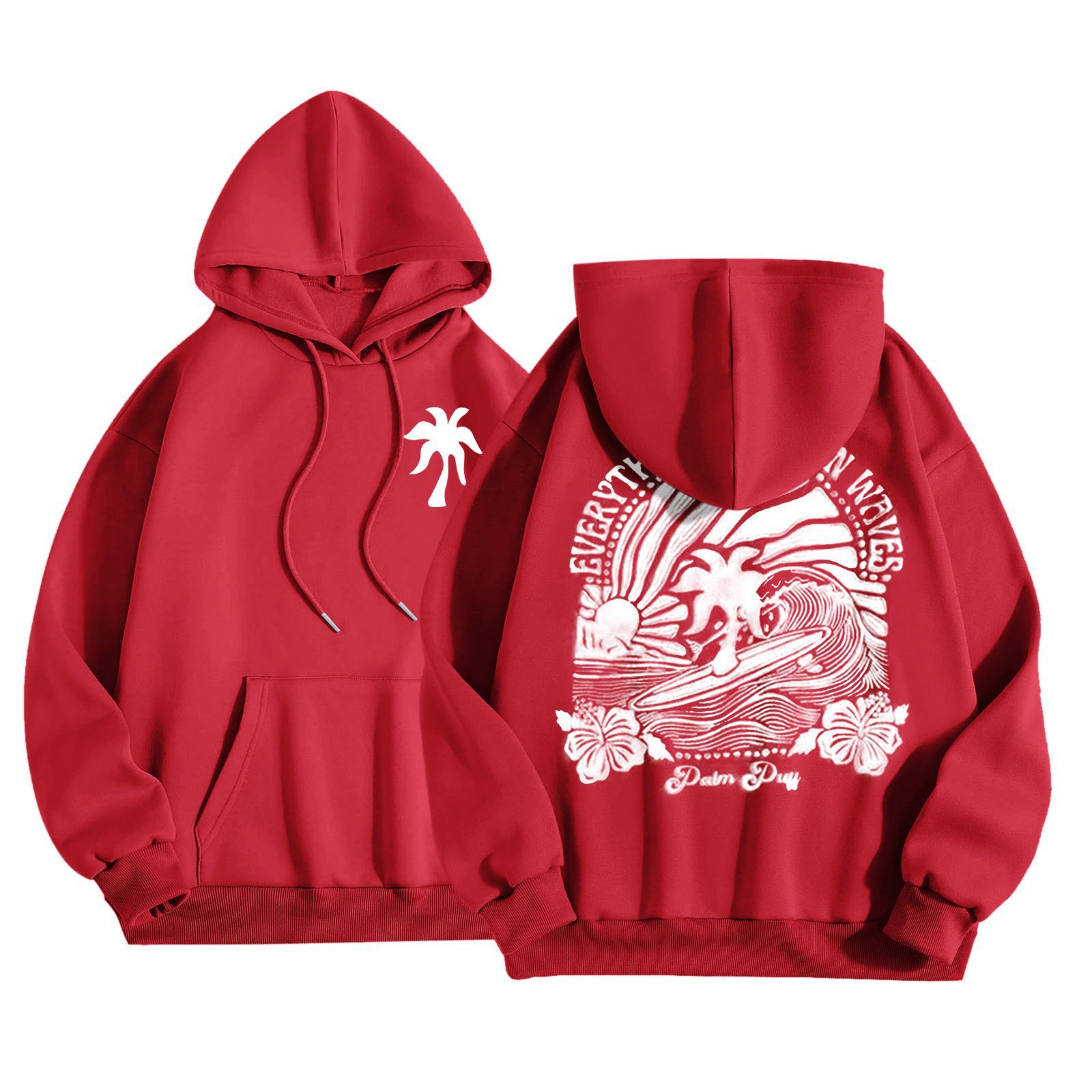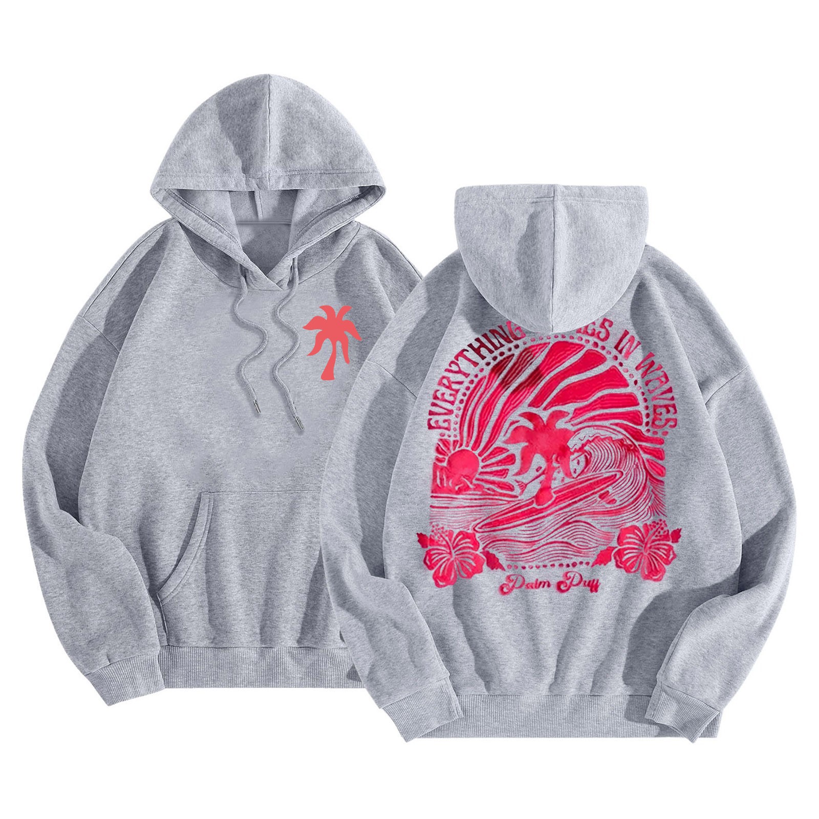 새 버전의 크로스보더 유럽 사이즈 여성용 드롭 숄더 슬리브 스레드 Chasing Sunsets 프린트 루즈 스웨트셔츠 후드티
