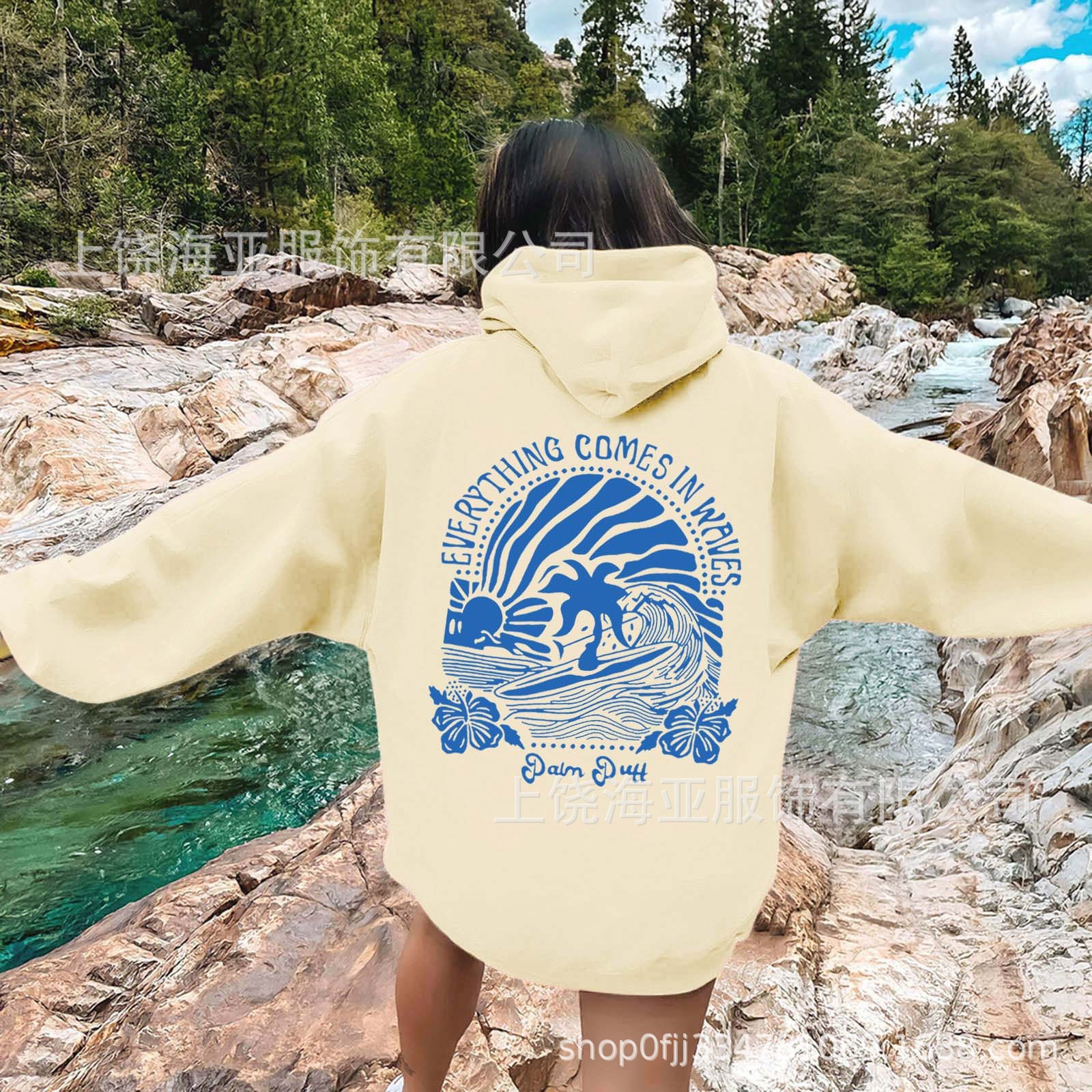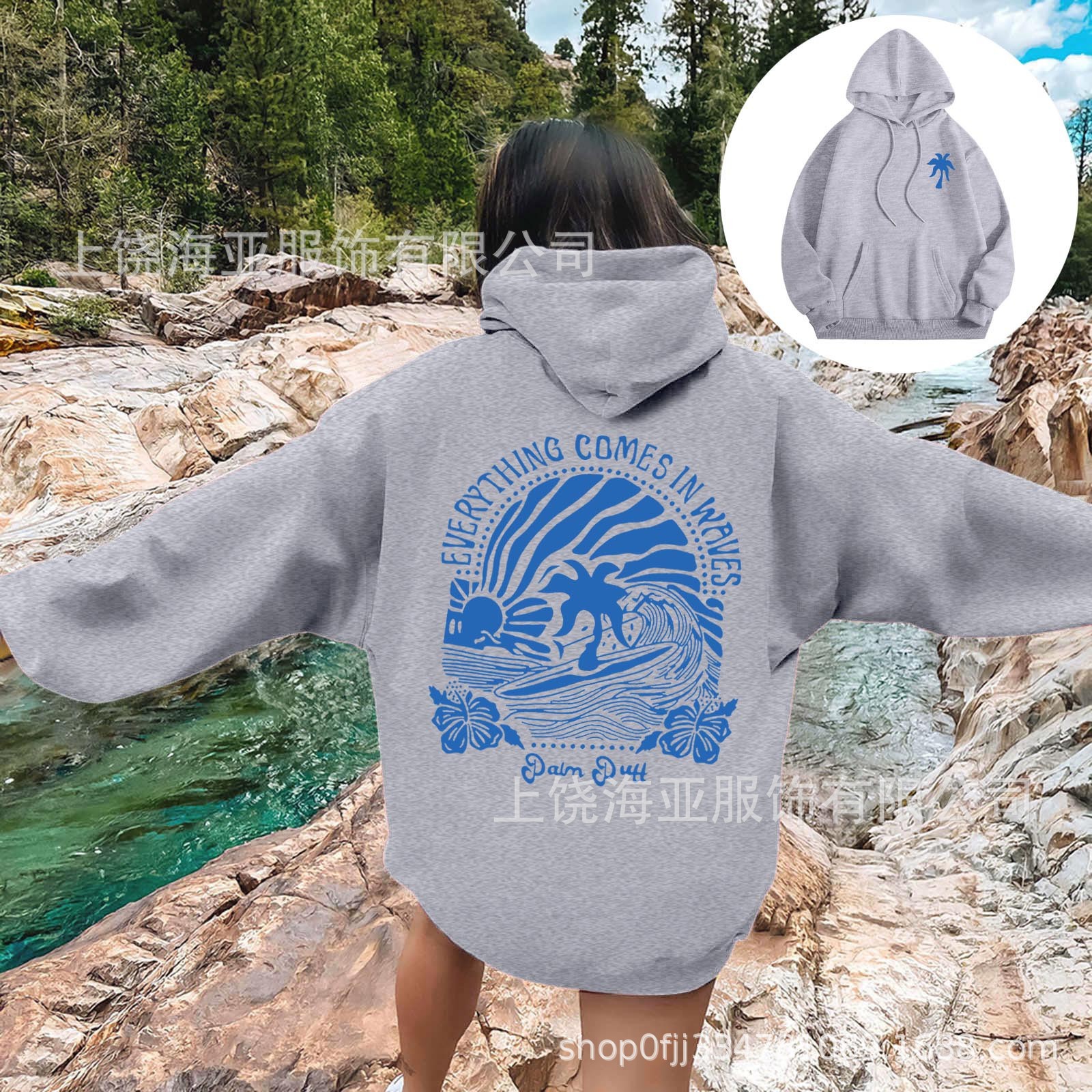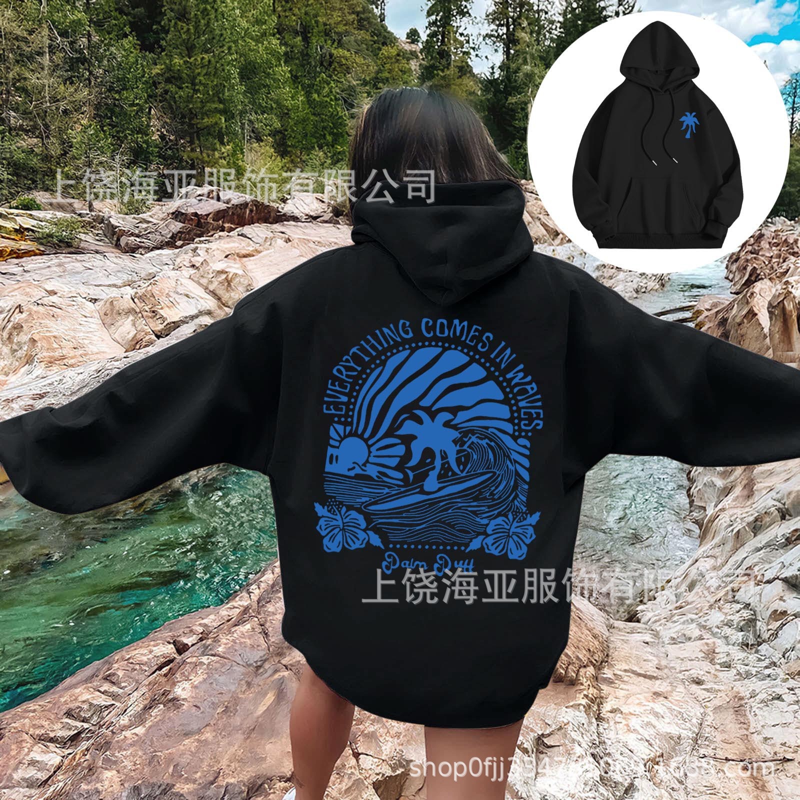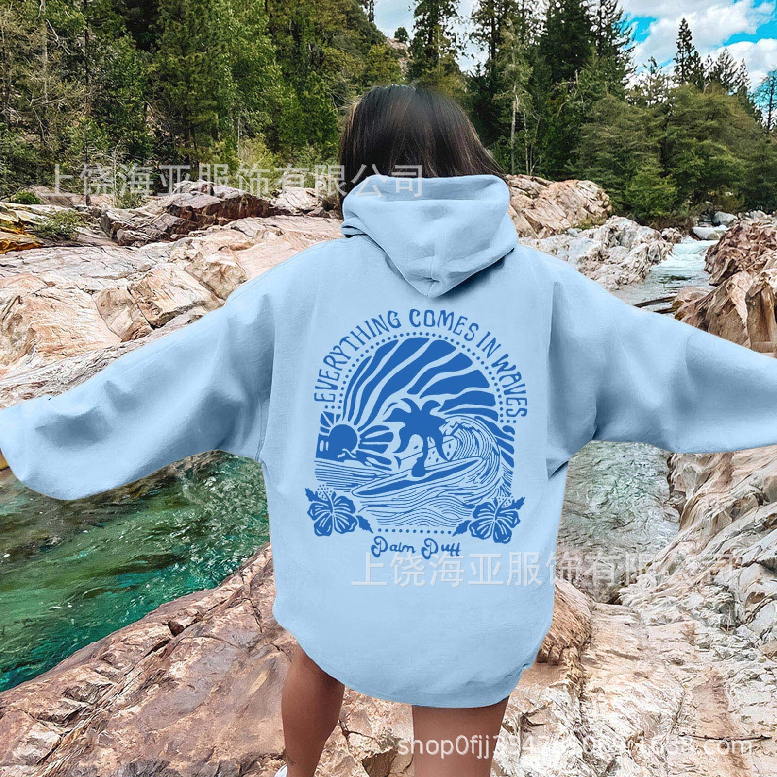 特点:欧美宽松落肩袖   螺纹袖口、下摆                         金属头圆帽绳