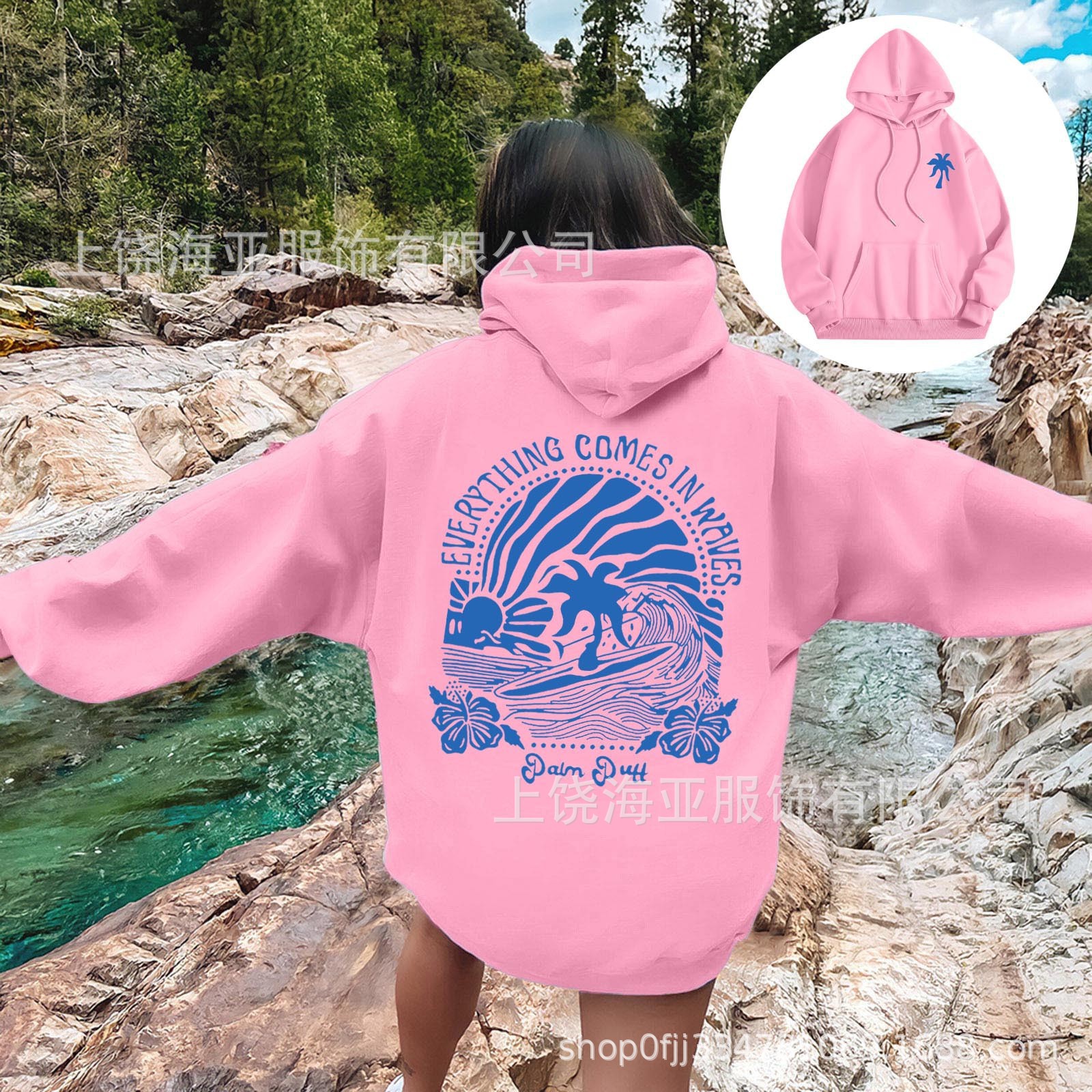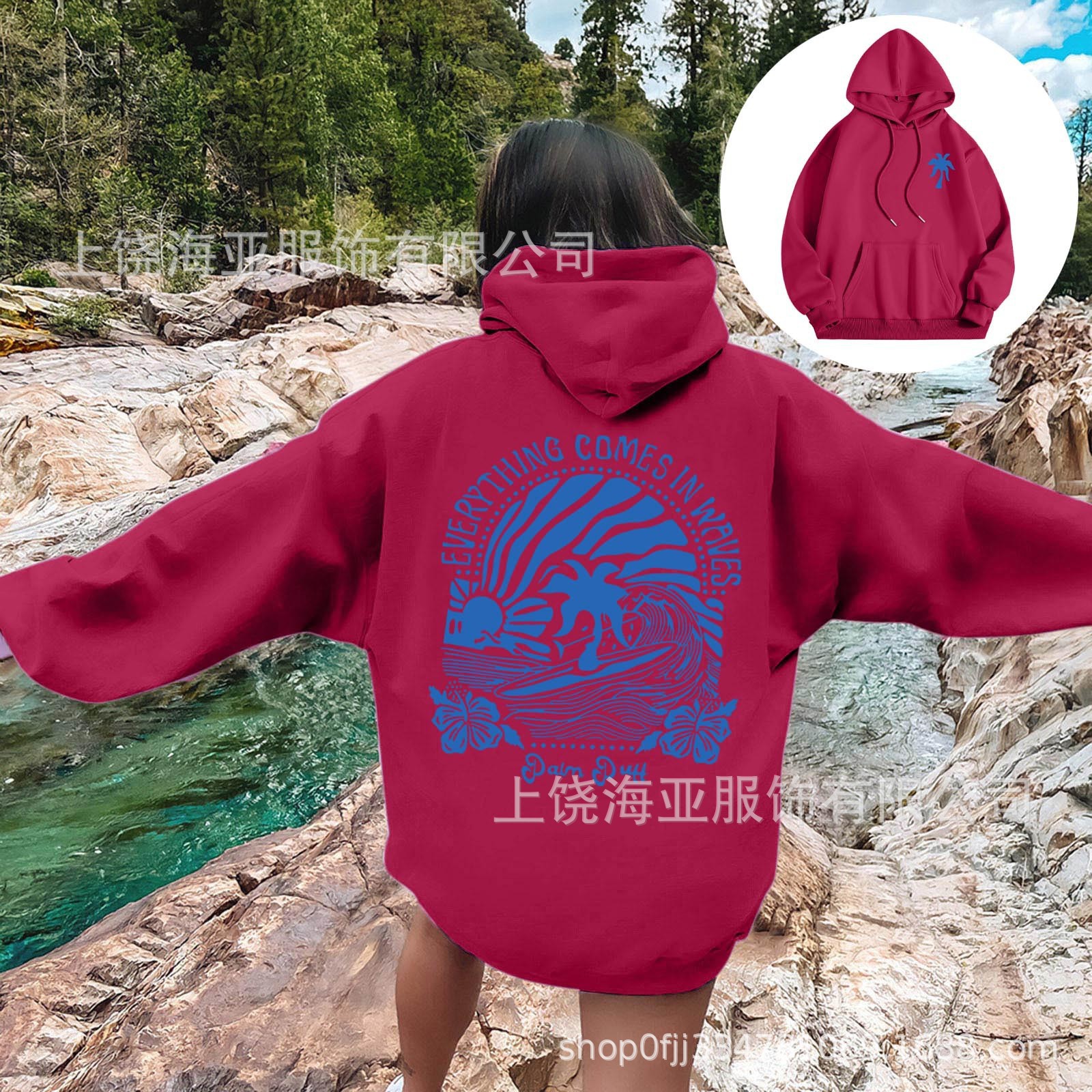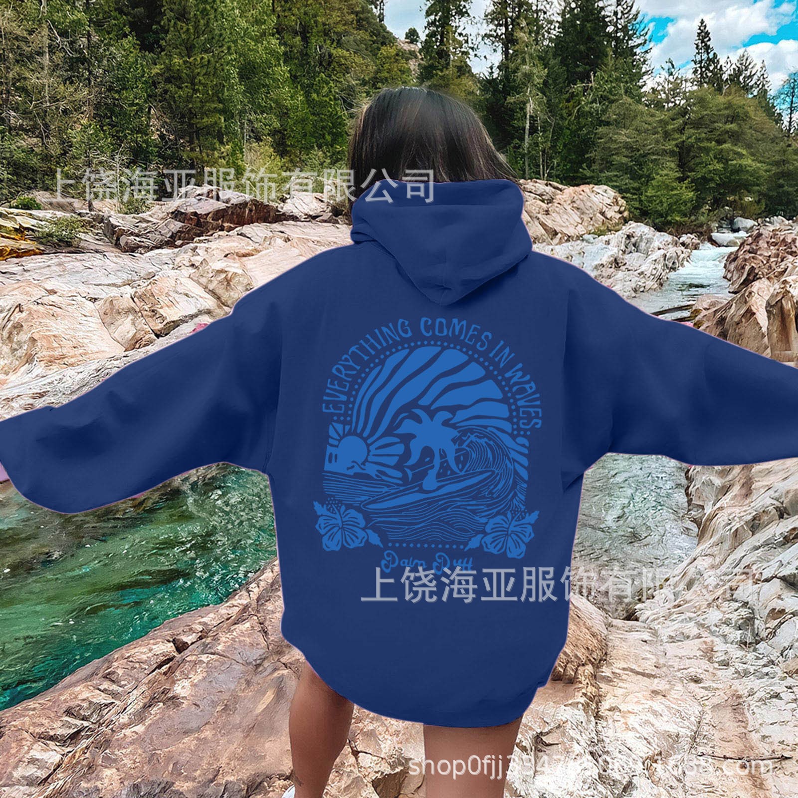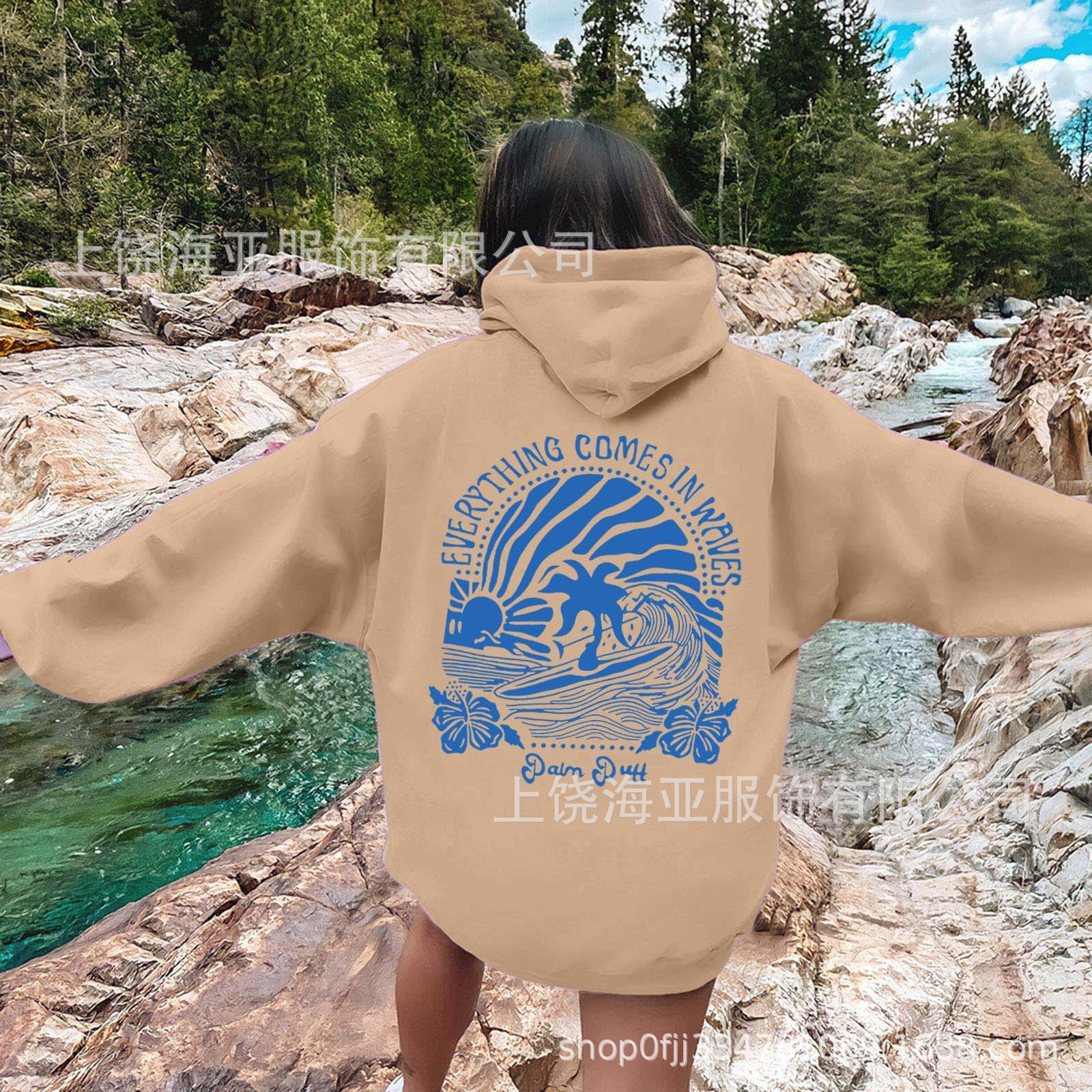 特点:欧美宽松落肩袖   螺纹袖口、下摆                         金属头圆帽绳