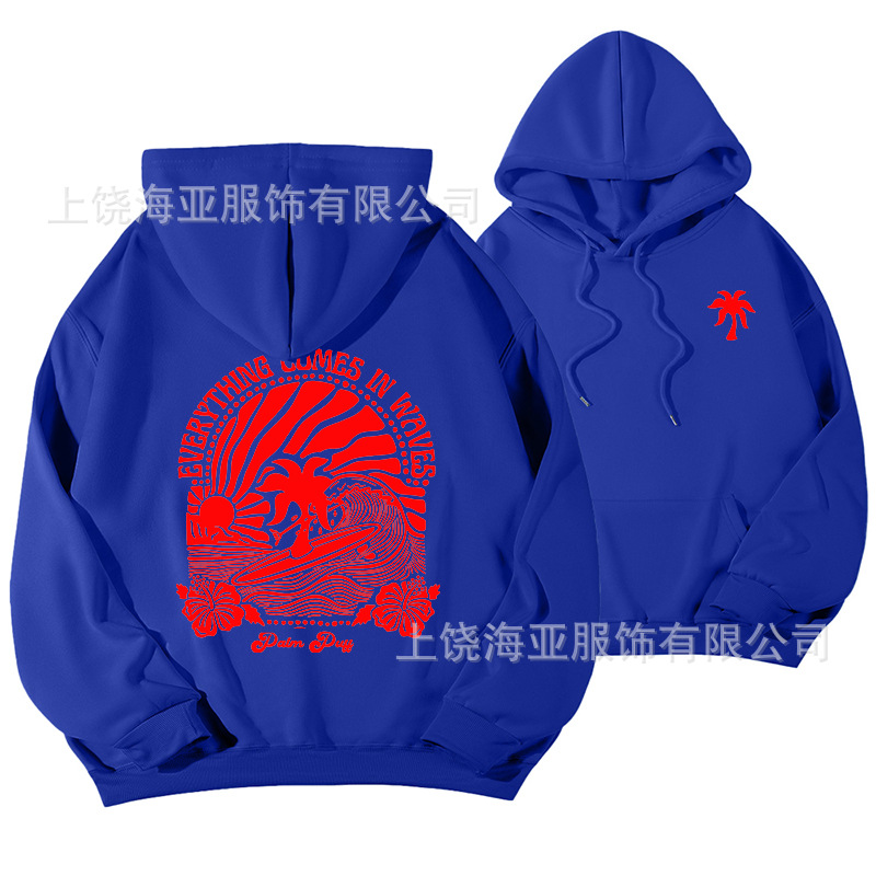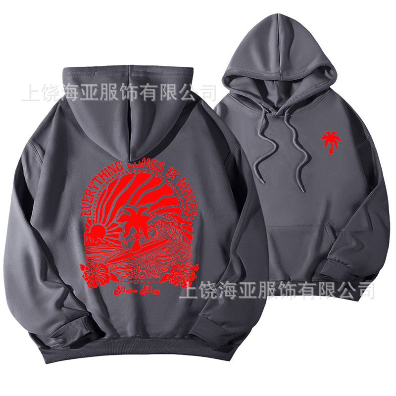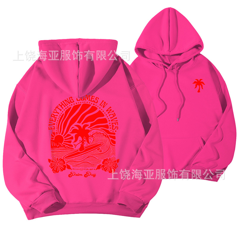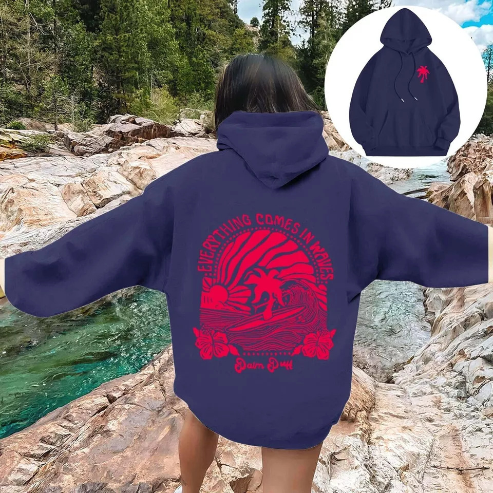 새 버전의 크로스보더 유럽 사이즈 여성용 드롭 숄더 슬리브 스레드 Chasing Sunsets 프린트 루즈 스웨트셔츠 후드티스토어 가기