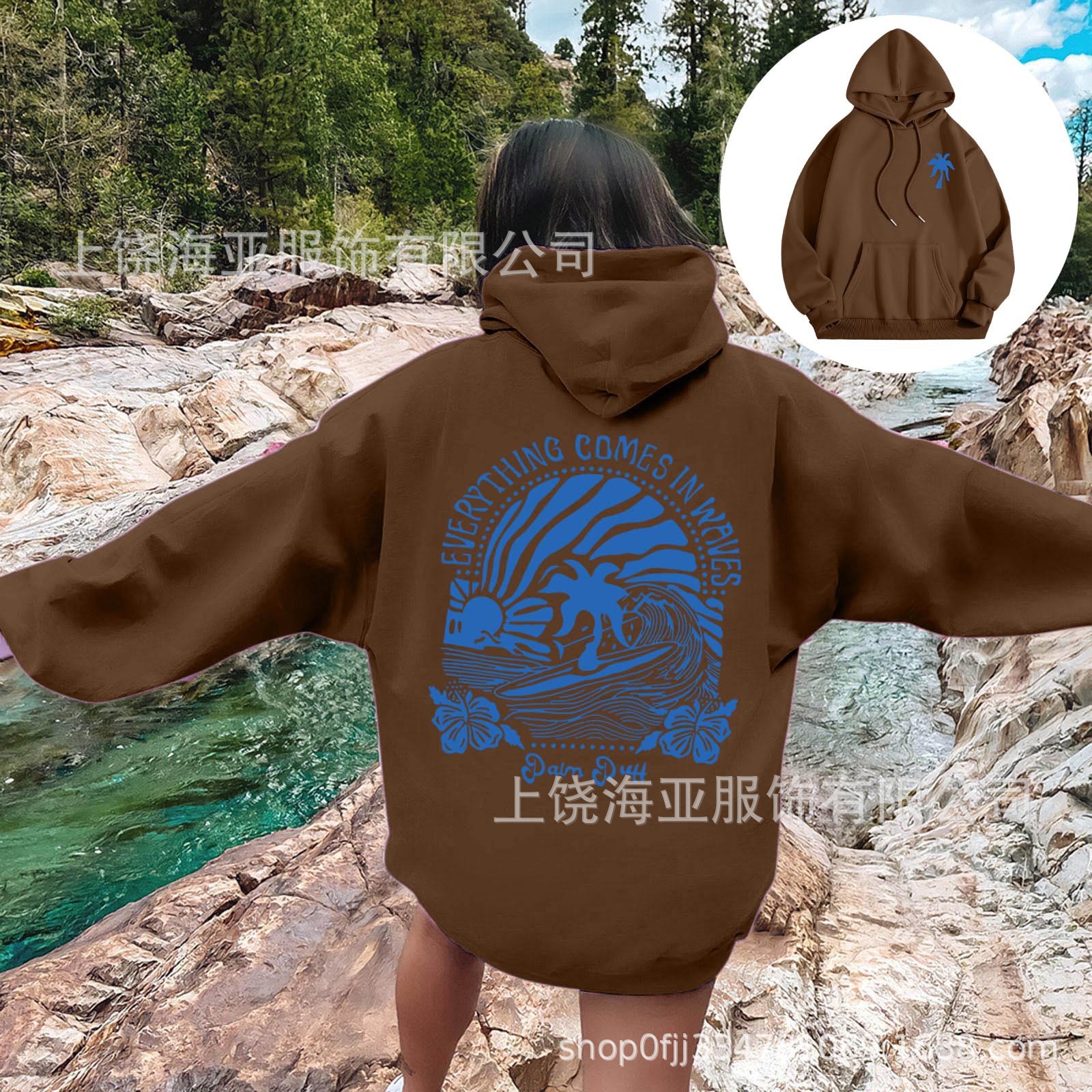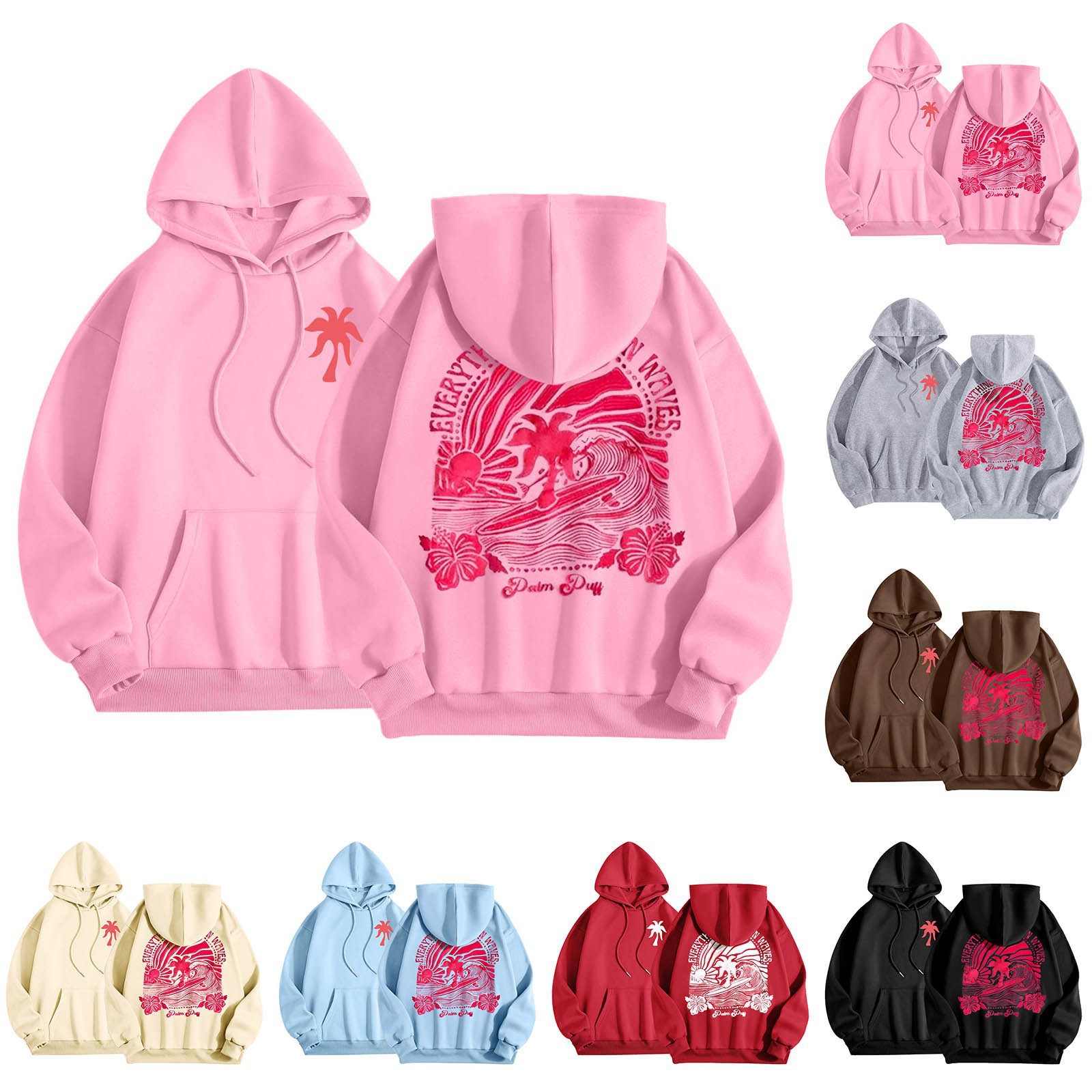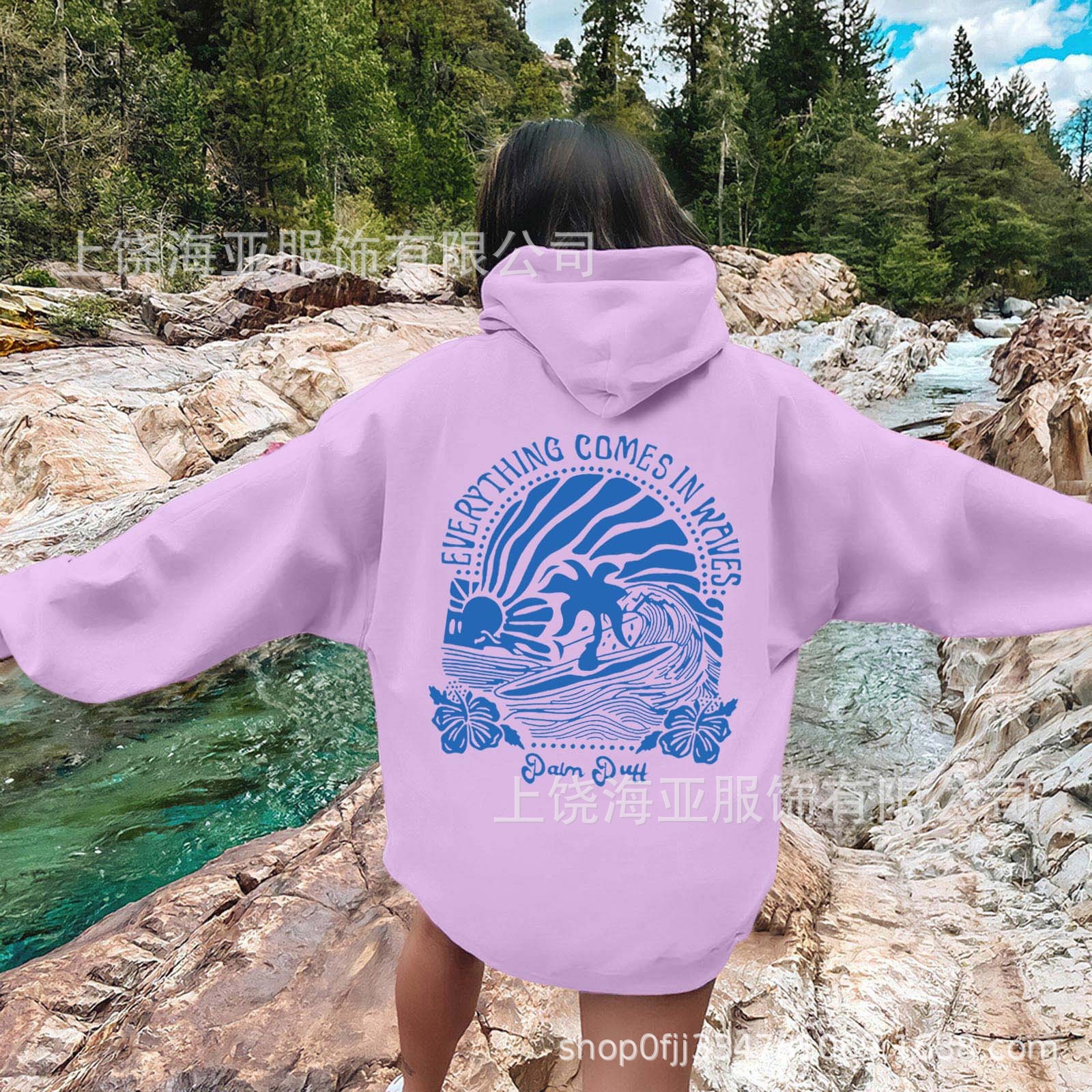 새 버전의 크로스보더 유럽 사이즈 여성용 드롭 숄더 슬리브 스레드 Chasing Sunsets 프린트 루즈 스웨트셔츠 후드티스토어 가기
